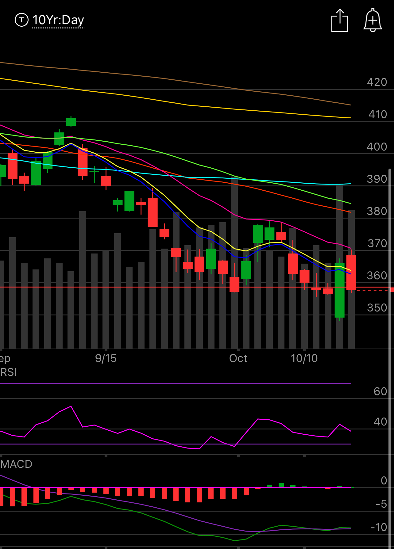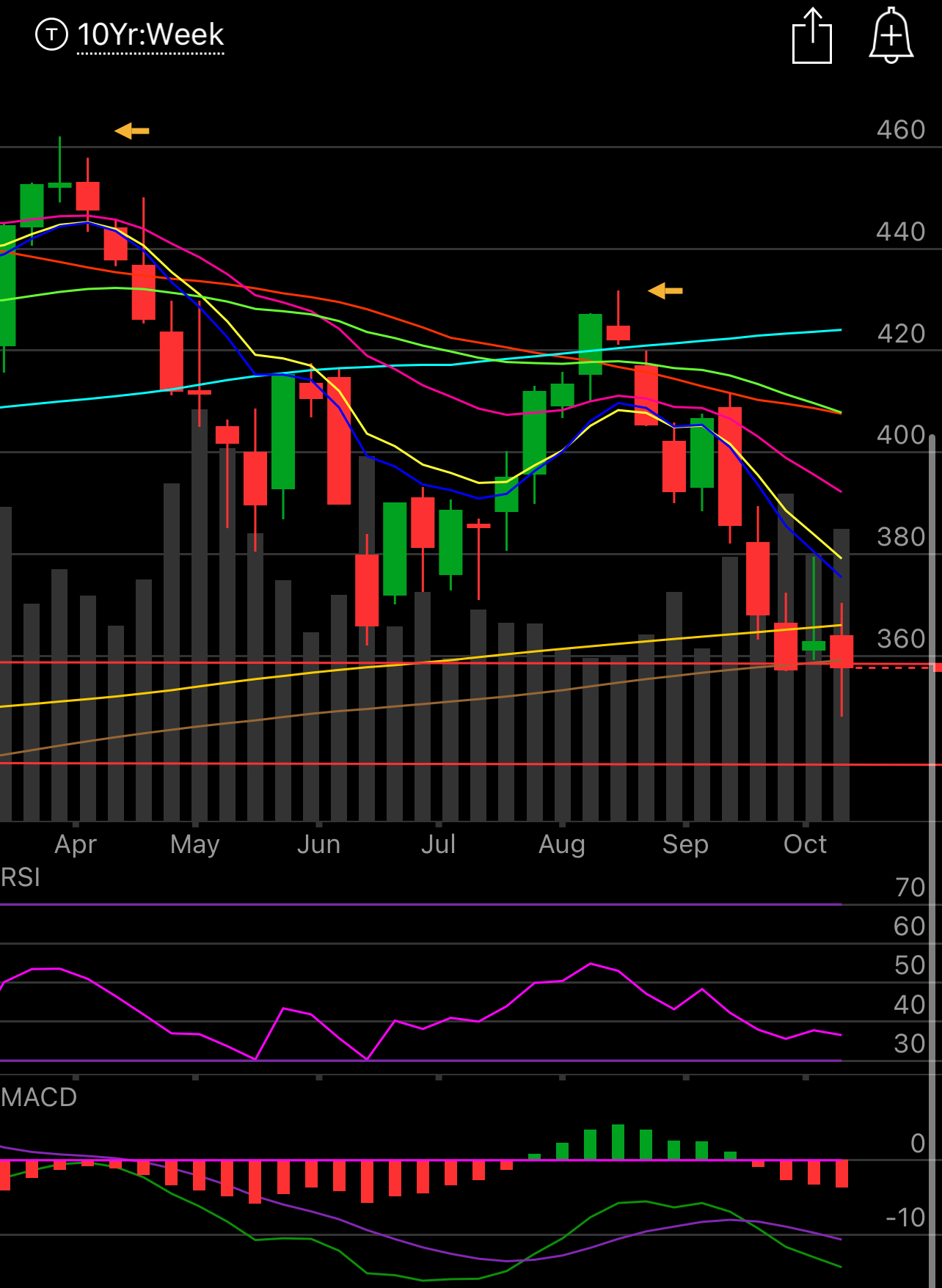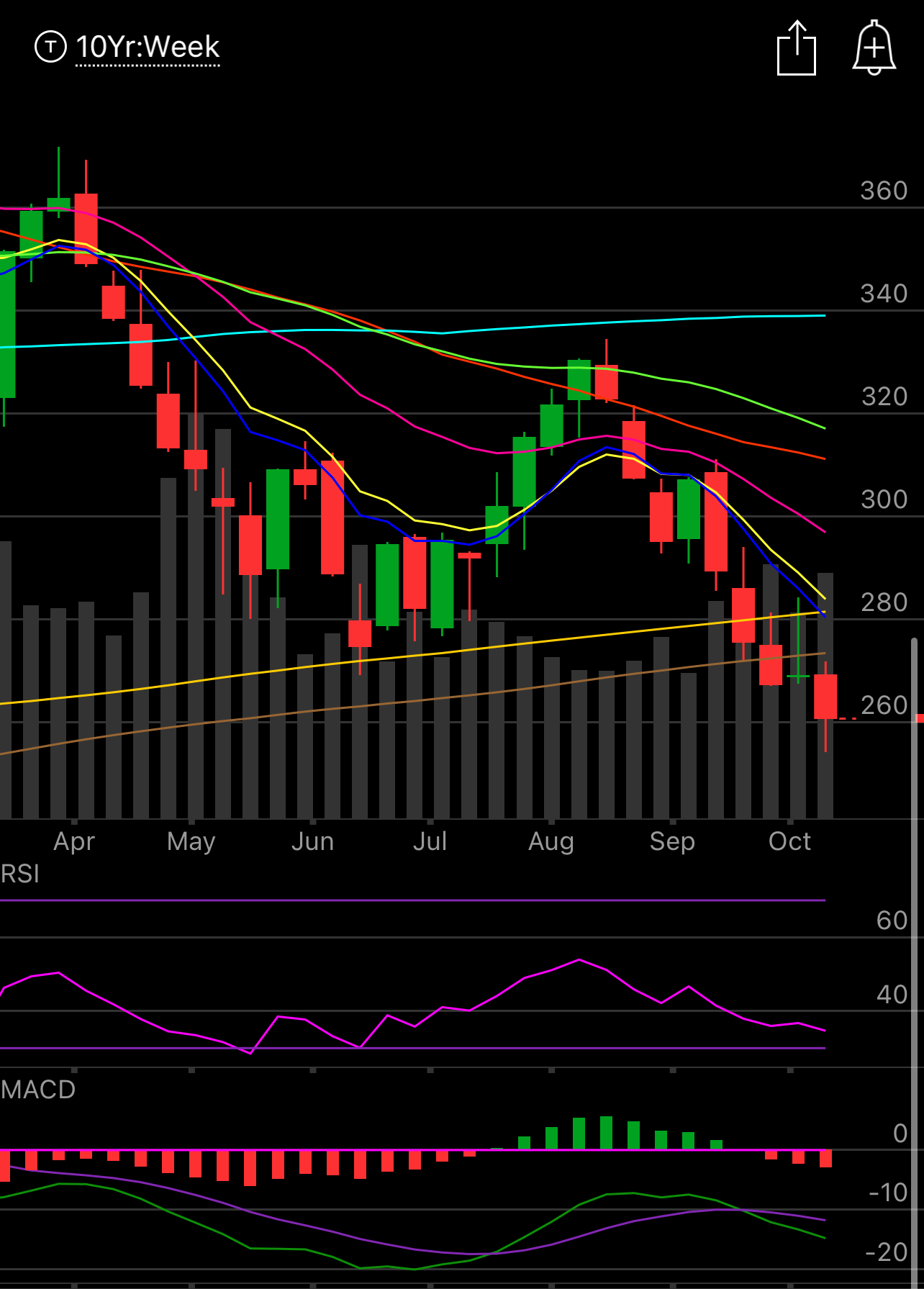 This market is relentless, Thursday you have the bulls pounding their chest on a bottom being in only to be followed up with a rugpull on Friday. You have to stay nimble here, buy and hold is just not going to work for some time. You’re going to have to utilize selling premium around your positions if you’re going to have any prayer of outperforming in this environment. Slowly but surely though it appears we are heading towards a lower multiple and for longer. While I don’t think a 5% FFR will sustain for an extended period of time, the reality is that if we are going there, and right now the market is pricing that, for a short period of time we will have to trade lower. As it stands now, the market is trading a hair under 15x the 235 estimate here at close to 3600. As I stated previously 13x was where we were the last time we saw a 3.75% FFR. So at a minimum, assuming 235 is the number, 3055 is where we would be. Still a long ways down.