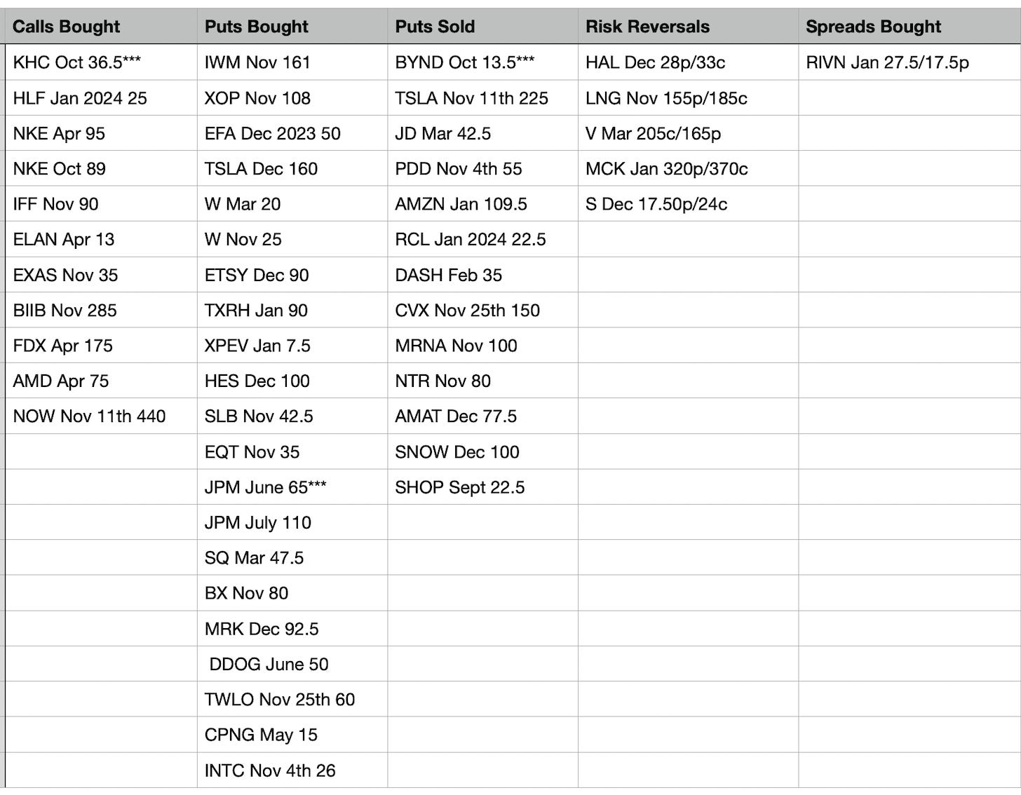 Risk Reversals, there were alot. These are my favorite trades to pay attention to because they’re max bullish/bearish. On the bullish side we had HAL,LNG,MCK and S where they sold puts to buy calls and on the bearish side we had Visa where they sold calls to buy puts.