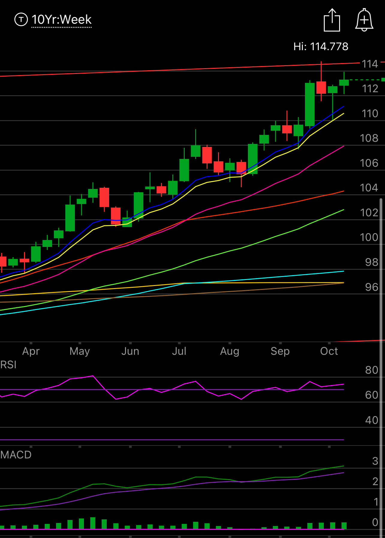 As we look at the dollar, it had another strong week, but still has not approached the highs from 2 weeks ago, this is a very strong chart that we need to breakdown if you want equities to see a turnaround. Maybe it rejects the top of that channel again soon and we get that, but for now this remains a wrecking ball.