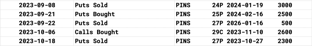 PINS - Pinterest recently gave us that big guidance at their investor day. You still have a well known activist like Paul Singer heavily involved here and nearing 100% return on his entry last year. Today it was 2300 puts sold at 27 for next week. Their partnership with Amazon should finally start showing some numbers this quarter on the report. This really has room to run if advertising names don’t dump in the next few sessions. Put sales below 22.5 a few months out look like a good spot to put on a long position.