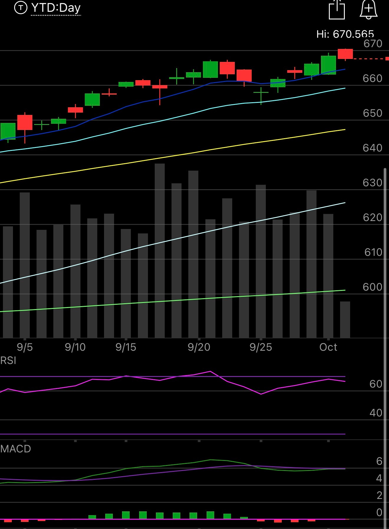 The SPY isn’t doing much of anything today, we’re red, but still over the 8 ema. Until we lose this moving average below there isn’t much to say other than things are fine, earnings season kicks off 2 weeks from tomorrow and I’m sure sometime before then we get a deal on the reopening of government and the market likes it. The one small concern today is VIX futures are red with the Nasdaq green so keep an eye on that.