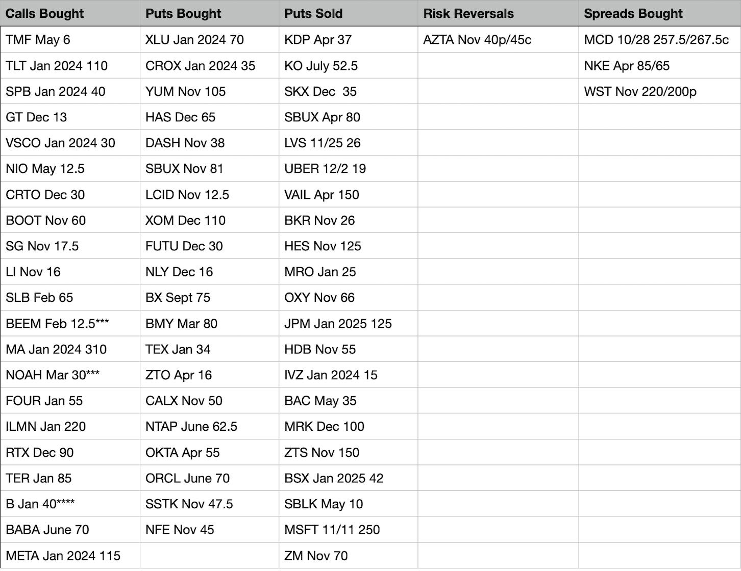 AZTA with an interesting risk reversal selling 40 puts to buy 45 calls in November, another name with very little options action.