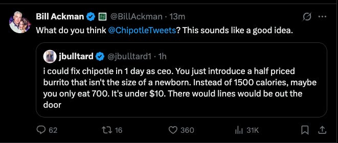 CMG - I sold to open 1000 of the Dec 27.5 puts for .22. I do think Chipotle has issues but they’re easily fixable to me, looks like Bill Ackman liked it too LOL