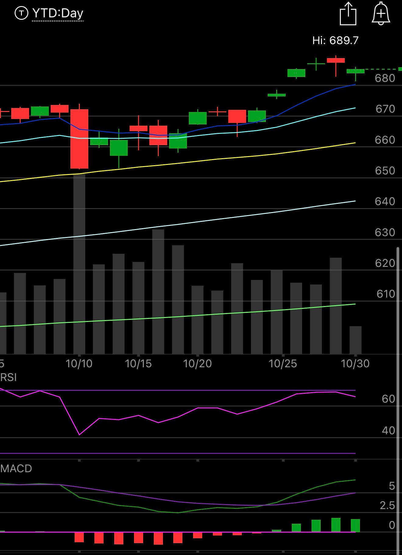 The SPY pulled back today after weak reactions from META and MSFT. The Trump/Xi meeting ended up being a big nothing and now we shift focus to Apple and Amazon today. Under the surface you’re getting all sorts of warnings about the real economy with Kraft Heinz saying the worst recession ever is coming and Chipotle being a disaster and blaming weakness in the sub $100k/yr demographic. To this point the market keeps shrugging all this off. Even with today’s pullback we’re still over the 8 ema so this isn’t anything terrible, we were just that extended which is why I said yesterday in the recap to take a day or two off, it is not often you get 3 closes outside the bands on the market. It’s crazy how long it has been since we’ve seen prolonged weakness in the market but if Apple and Amazon are weak today, I imagine we may finally get it.
