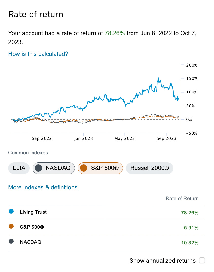 Overall, the point of all this is to say all these emails/complaints about the data being wrong or me not being active are just too much. I’m giving you access to data that costs many multiples of what you’re paying directly from the CBOE. I’m then modeling it for you to show trends, I’m organizing it for you and sharing it everyday along with insights on what’s standing out. Instead of realizing that there is a treasure trove of information for you to dig through daily, I’m getting chewed out because you can’t copy my trades? Except you can, you know what I’m in and I’ve posted every trade I’ve taken from the day this began. I’ve always posted what I’m holding and what my returns were, even with the big drawdown recently in the market and in that position I’m in now, I’m still outperforming the market by almost 15x since this substack began 16 months ago.