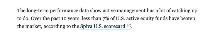 First off, did you know only 7% of funds beat the market? The whole investment community that exists and only 7% can beat the SPY, it isn’t easy to do.