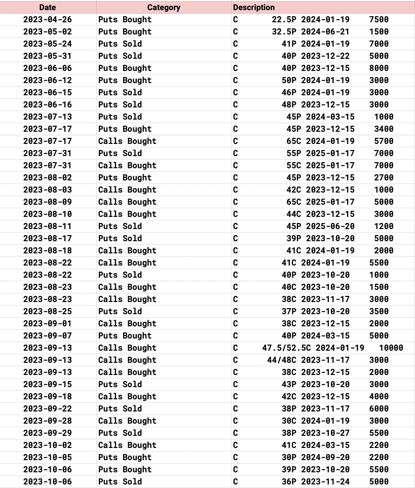 What I’m getting at is this, before I ever wrote this substack, I compiled a list of all the days unusual activity and I would spend my outside market hours going over charts one by one, to see what trades interest me and I would execute them. Last June when I started writing this, everyday I would post my entire book of trades, I had alot going on. What changed? Alot, previously I wasn’t at my computer all day, I would let my scan run and send out a recap after the market closed early on. Then alot of people began asking me to send it early so they could have time to act on things intraday, I obliged and began sending it out at 12:30 my time in the middle of the day. Then, many of those realized that wasn’t fast enough as options move very quickly many times after they’re placed, so now we have the live part which occupies my entire morning from 8:30 to 12:30 where I’m there every single morning posting every single odd trade I see the instant it comes in. I never did that before. I never spent every second staring at my screens, typing up trade by trade, then in the middle of the day, while posting all that, pulling together all the charts/tables for the write up which is another time consuming task. You can’t hold open positions in size unless you’re dedicated to watching every tick and I just can’t.