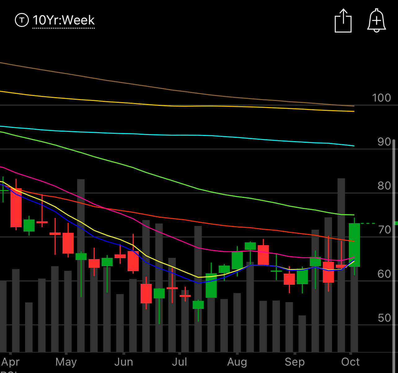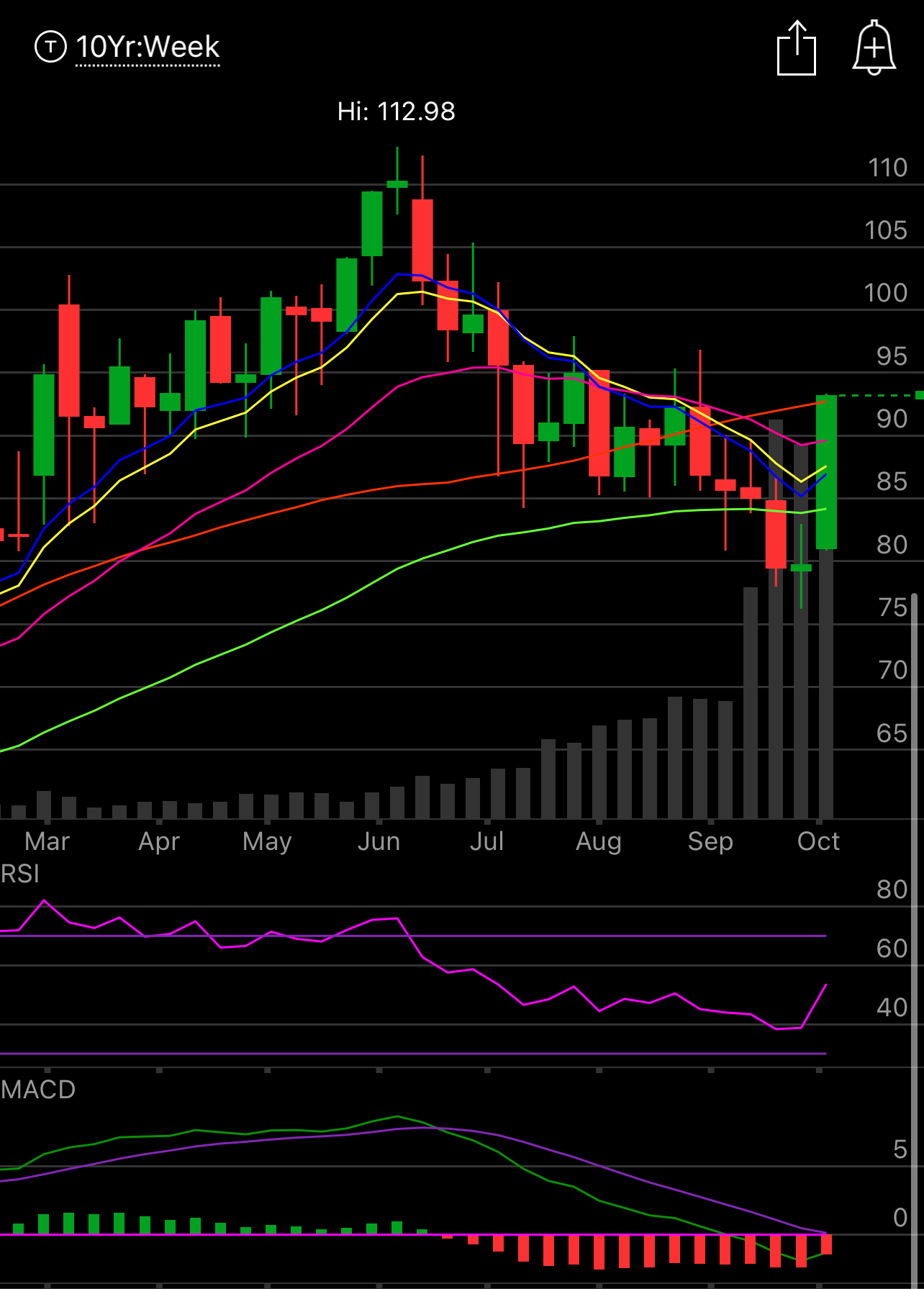 The one that inflicted pain on us last week was oil. The Biden admin strategy of dumping our strategic reserves to send oil lower into midterms backfired because OPEC just decided to dramatically cut output. Look at this candle below. While we artificially tried to lower prices, they’re now artificially trying to boost them, this whole charade could simply be avoided by drilling more here but the current administration just doesn’t want to. I’ve said for a while I thought oil was going back higher once the October SPR release was over and that’s playing out now.