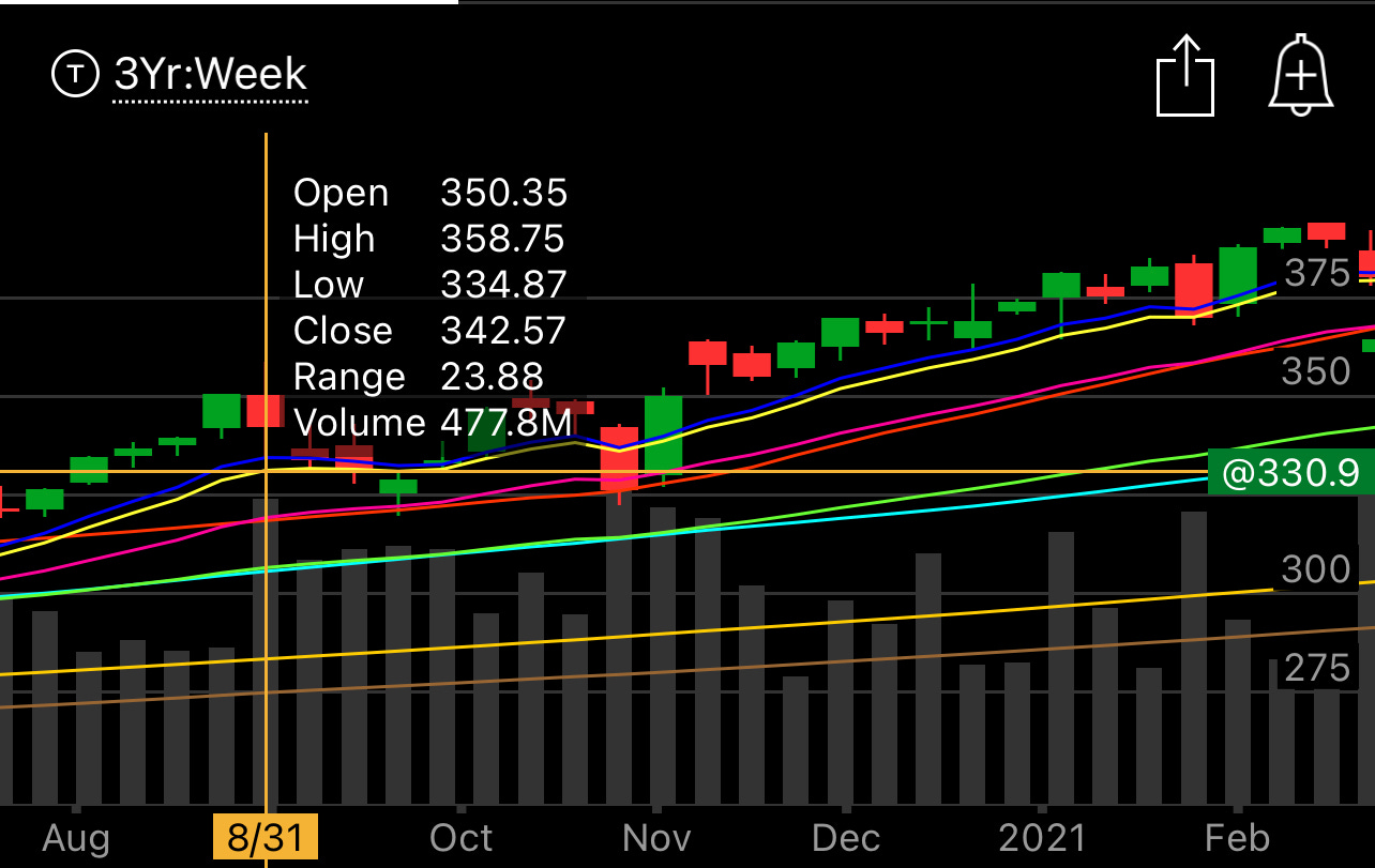 The key number to watch going forward on SPY is 358.75. Now as I said above, we broke that last week, but that is the 2020 high. If you’re bullish you don’t want to see the market break and close at new lows again. We did it once but had a small bounce last week.