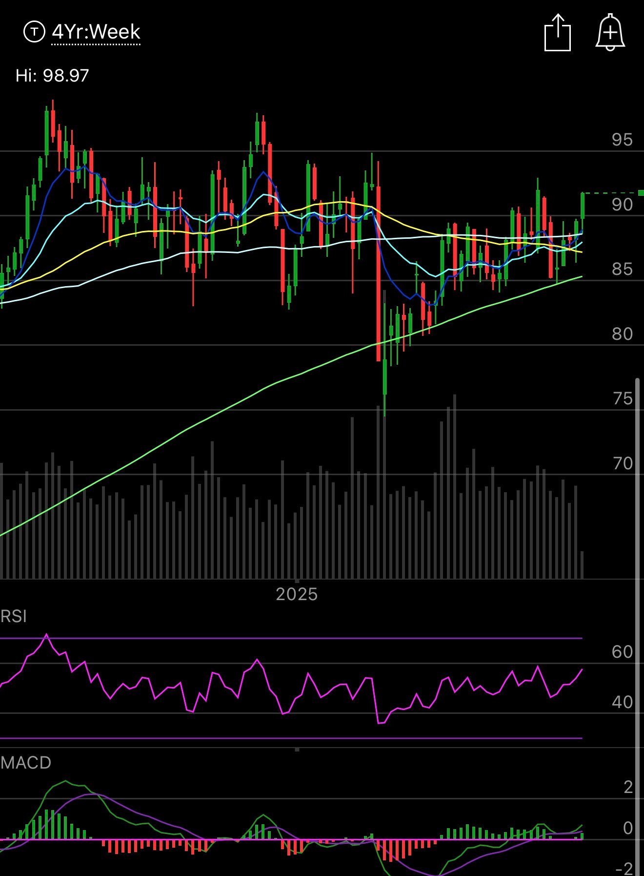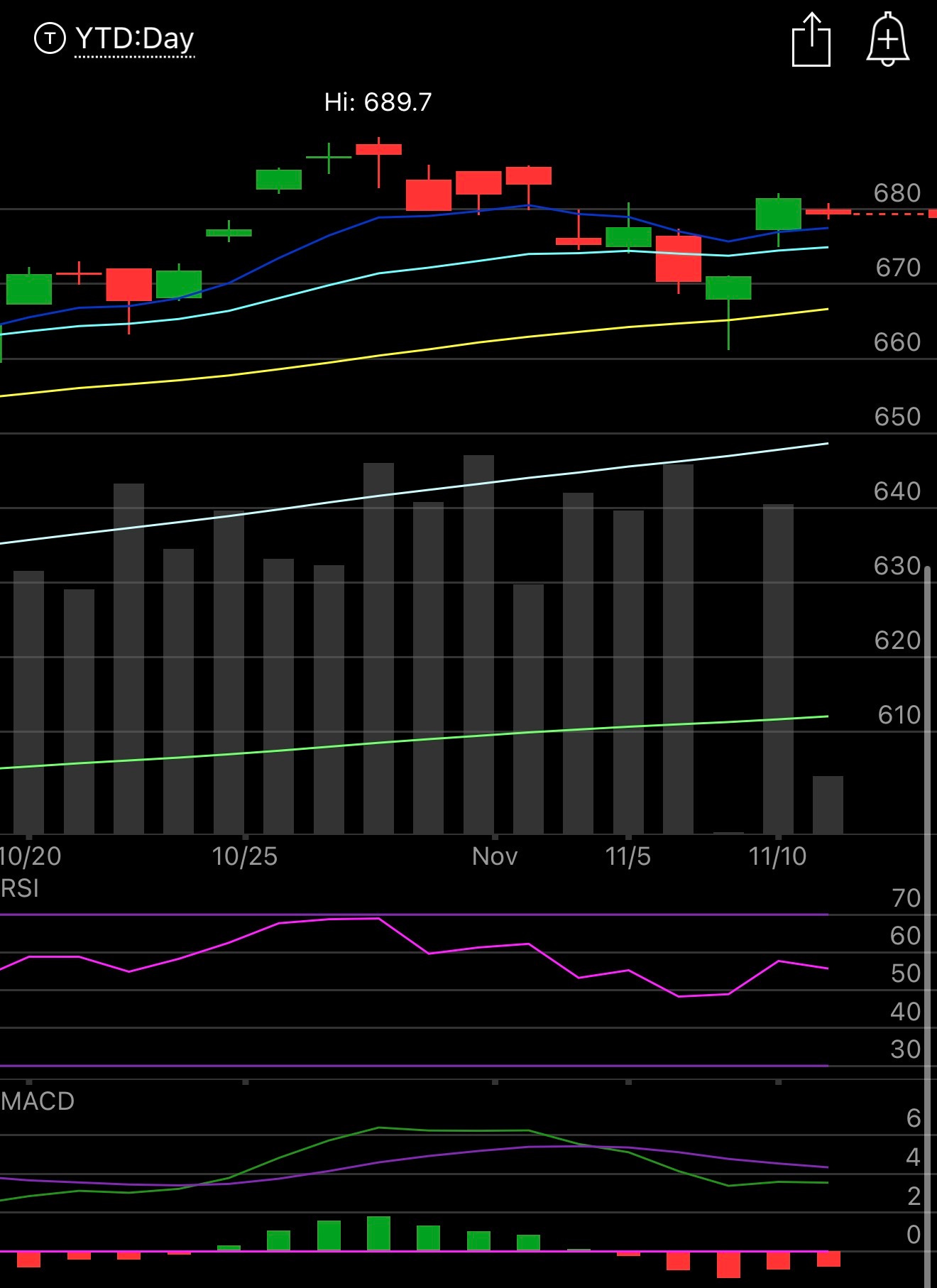 The SPY is holding up over the 8 ema even with our biggest component, NVDA, down 3.5% after Softbank sold their stake. Then unprofitable tech was hit hard after the CRWV report. Quiet session overall, it is veterans day, no bond market. RSP is green so things besides tech are working today. I don’t know where we end the session, it is early, but as long as we’re over these short term averages things are ok. I think for the most part the year is over, we still have NVDA earnings but other than that, we don’t have much left. We have 27 sessions left till December opex after today, we have thanksgiving coming up and most people are up so much this year things are just going to be alot slower into year end if I had to guess as many just take off. I’m expecting alot of choppiness, but I’m not looking for anything dramatic up or down into year end unless NVDA has a crazy earnings move next week which is hard to fathom at a near $5T valuation.