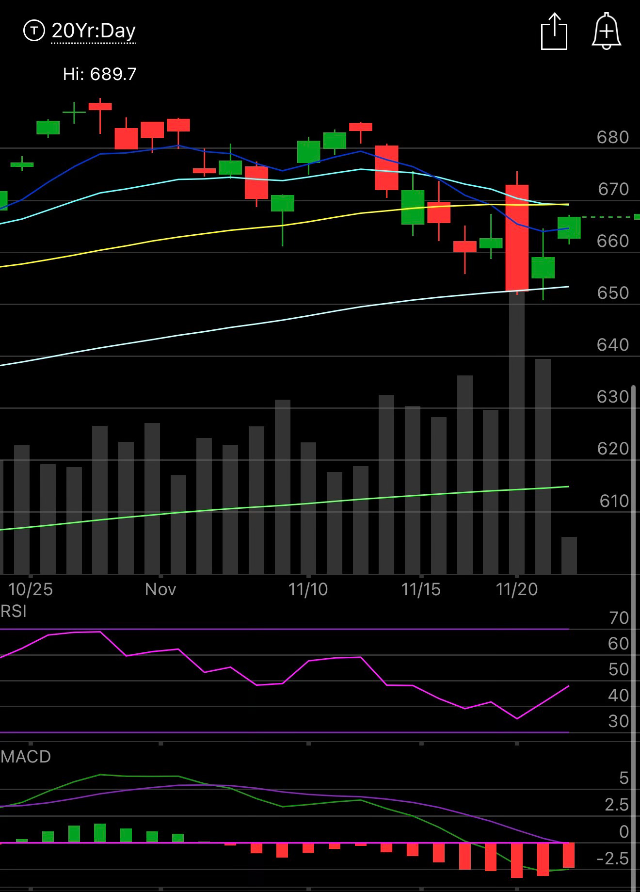 The SPY had a nice move overnight on the news Xi and Trump had a phone call. Silly stuff, but these are the pumps we get when the market is down and we’re heading into slow Thanksgiving week. Technically, we’re back over the 8 ema, but look overhead the 21 ema and the 50 day will both be tough resistance there. If we can get through those you can get super bullish again but if we reject there then this is just a series of lower highs. This is a low volume week, we’re closed Thursday, and friday is a half day so not much to be taken from today’s action as the volume isn’t exactly overwhelming.