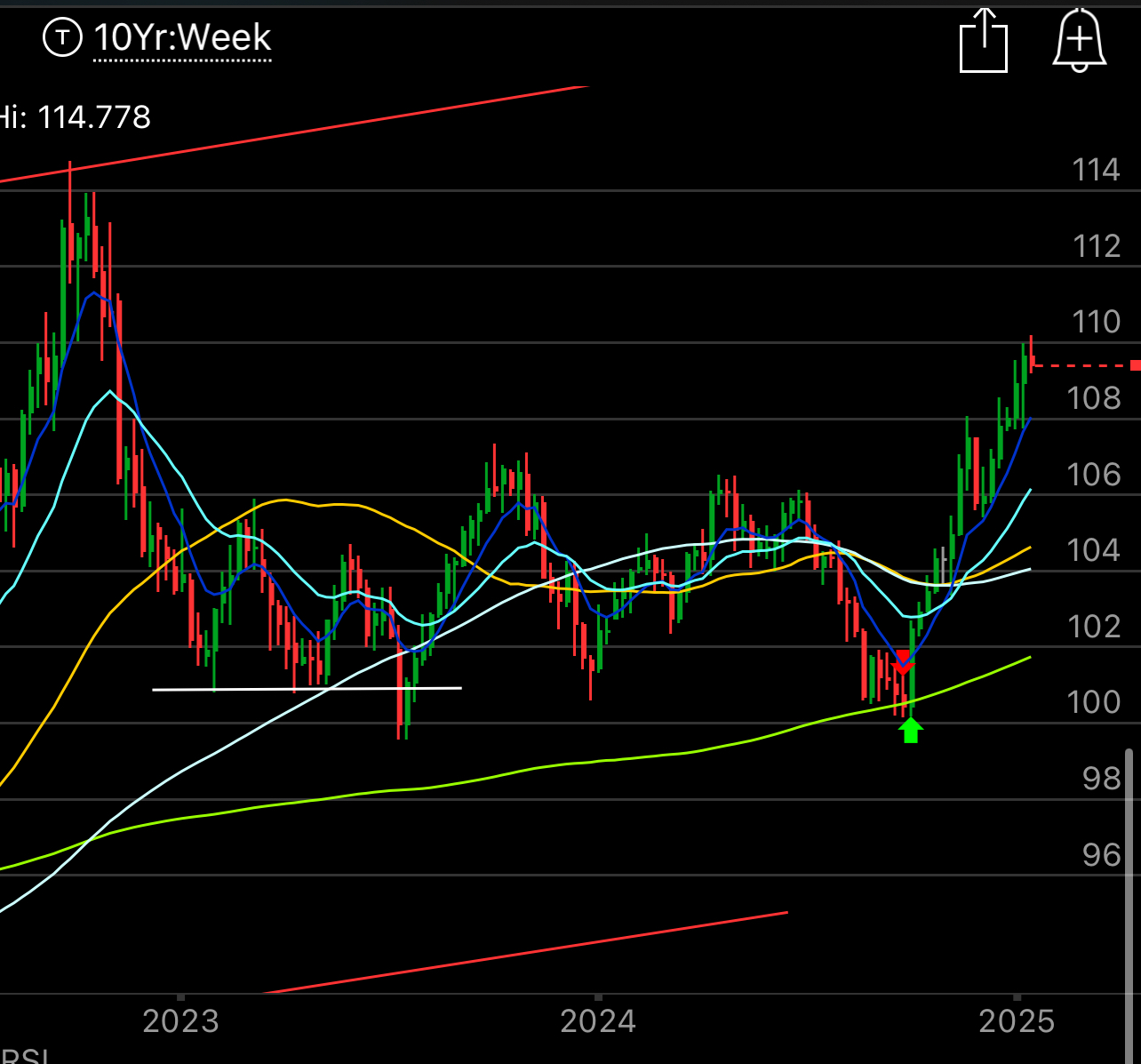 The DXY continues to weigh on everything near 110, it is at 2022 levels when we were in a crisis. I mentioned a few weeks back that something had to give, you couldn’t have the dollar at highs and stocks at highs, we got the answer, stocks gave in. Something is just not right with this strong dollar, high yields and the market still 5% off highs.
