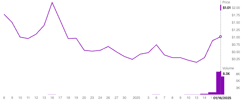 Those calls were bought for 1.01 those calls are $1.67 right now with HOOD at 47.95 today. That was a quick $200,000 profit for the player who bought 3000 of them yesterday.