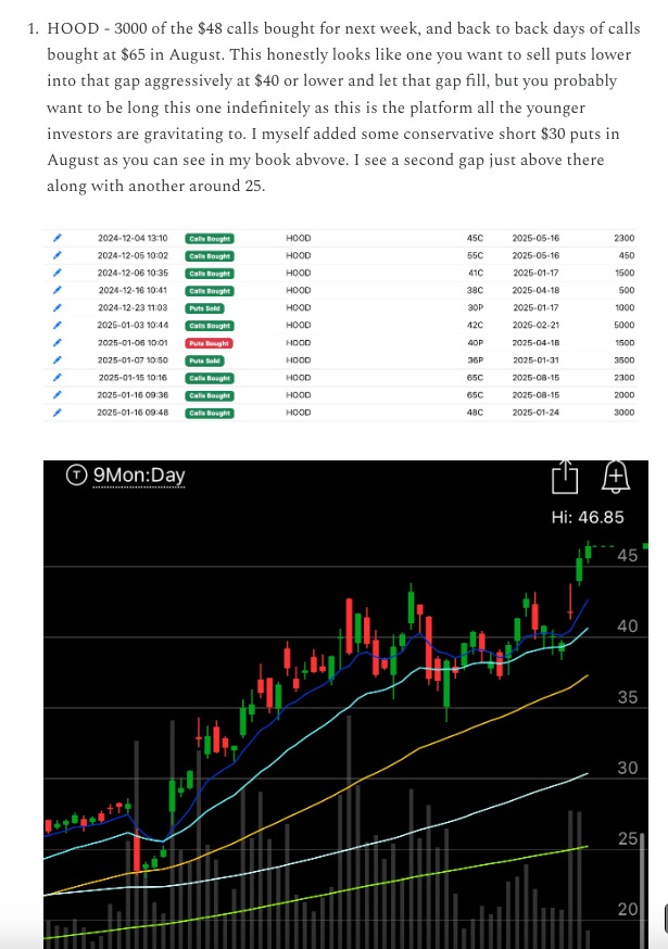 HOOD - In yesterday’s recap I flagged some calls on HOOD for next week bought 3000x along with a few other bullish trades recently. This morning Morgan stanley gave it a huge upgrade which sent the stock up 4%.