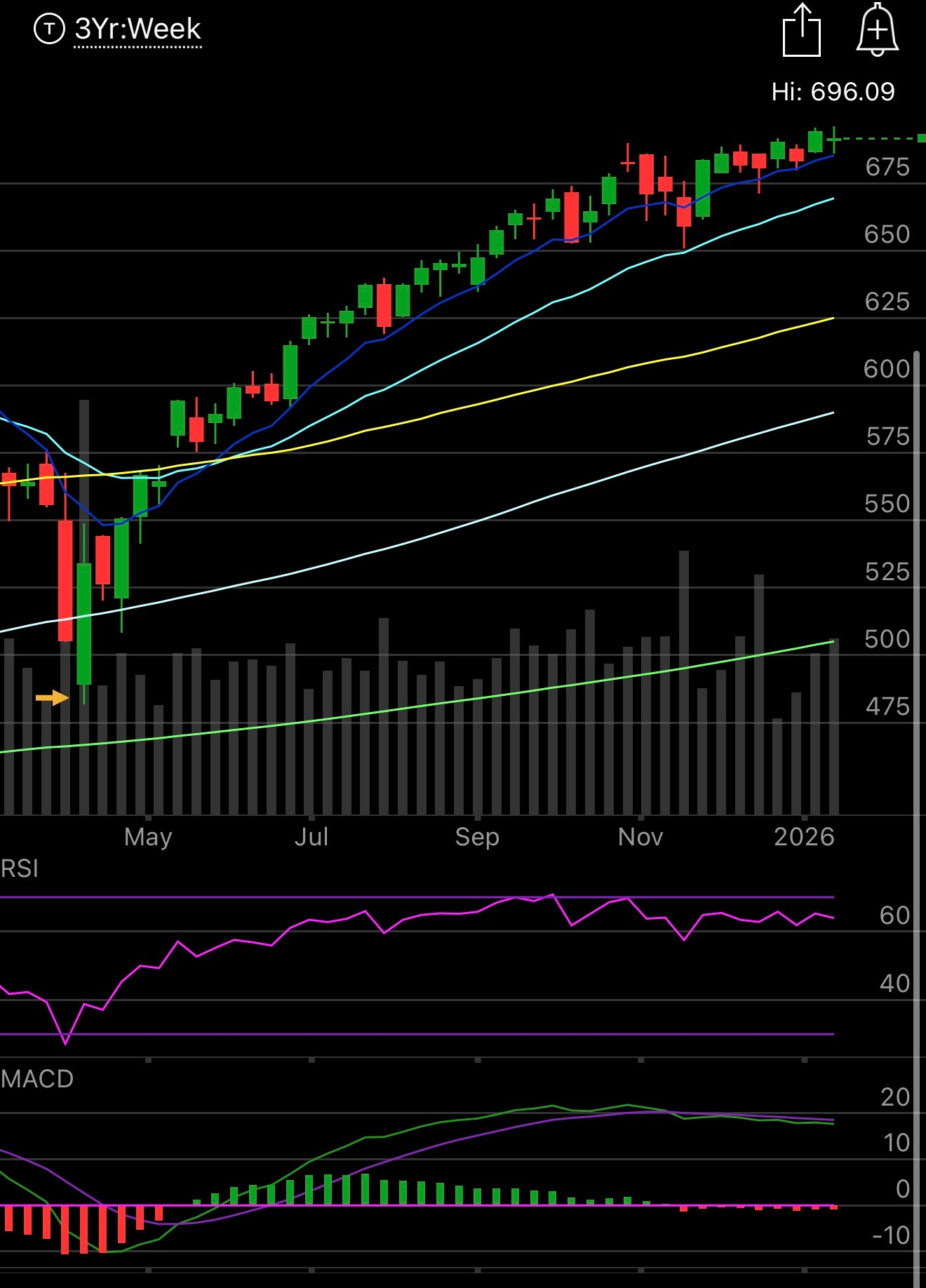 The SPY just closed over the 8 week again and you can see this nice uptrend we’ve been in since last April, we are riding this 8 ema higher for the time being without a care in the world. Megacap earnings kickoff in 10 days and until we hear from the companies that make up most of the weighting in the market, there just isn’t much to say. We’ve gone nowhere really in 3 months, the moving averages are catching up right now but we’re also 1 bad week away from all sorts of technical damage unfolding so you have to be mindful day to day and respect any breakdown we have below things like the 21 ema as a sign to lighten up. Keep that in mind because it looks like Tuesday may get a little ugly with what has unfolded so far this 3 day weekend.