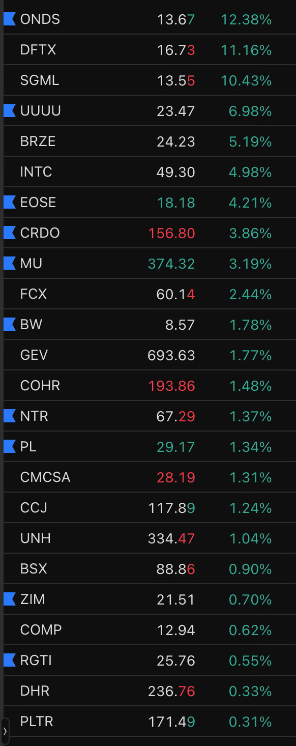 This was a weird session I was expecting to be deeply red, surprisingly I was green, just a combination of being in the right names with the flow recently like INTC,BA,FCX in size as they’re all green. I’m happy, things could have been worse, but I’m ok for now and considering the leverage I’m using, I will take it.