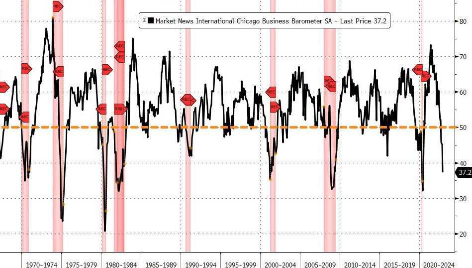 Then yesterday we had an awful PMI reading of 37. Every reading sub 40 has occurred in a recession, see those red highlighted areas, those are recessions, of course now because they’ve changed the definition of recession, we aren’t in one, I’m told.