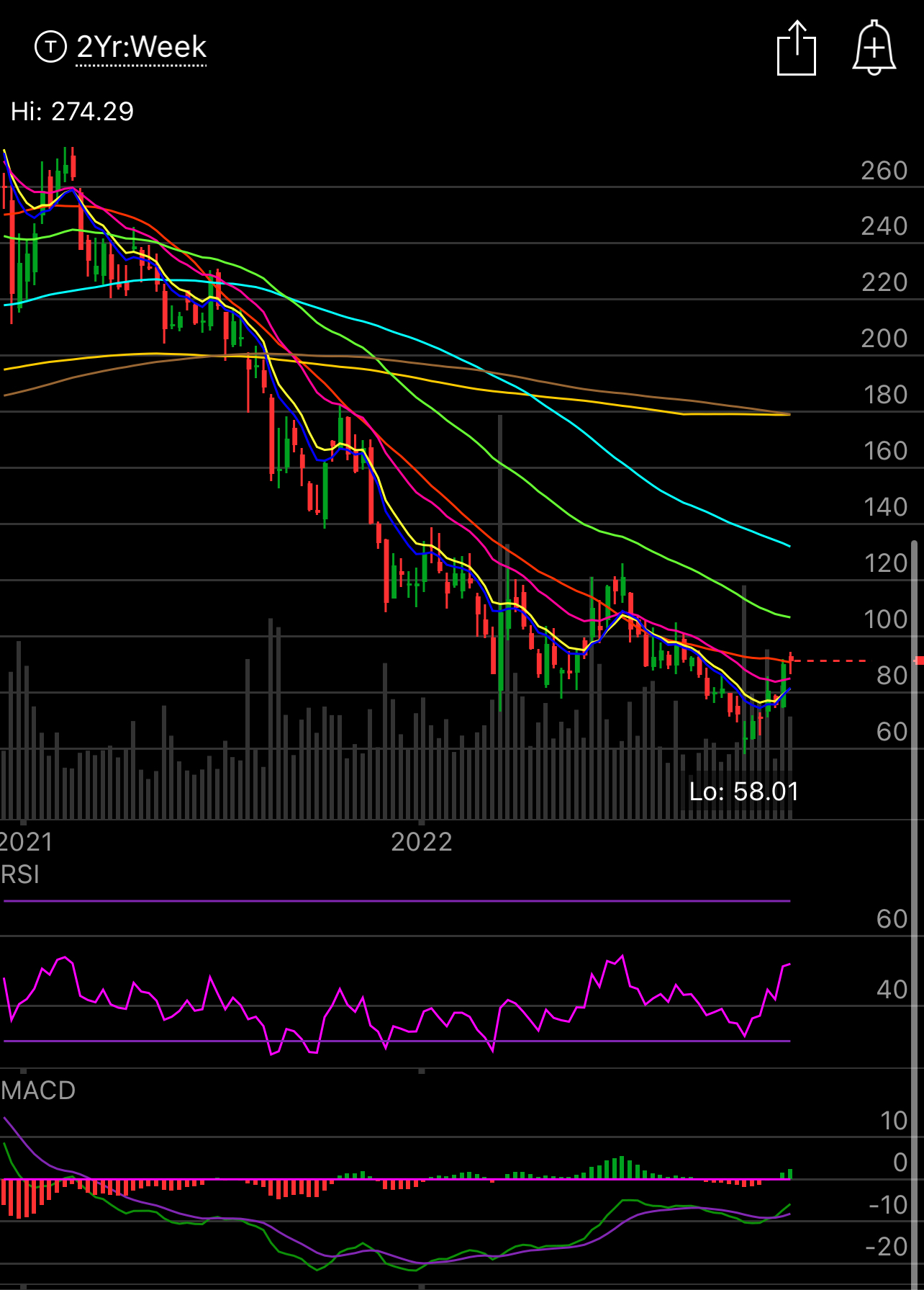 All I want to say in closing is I’m not bearish or bullish, I’m open minded to whatever develops in the charts. At the current moment we continue to trade below that year long downtrend, give me one close on the other side of that downtrend and I will be bullish, we all know the stock market is not the economy. The people who constantly try to lump the 2 together amuse me. We were shutdown as a country during covid and stocks kept rallying everyday. The economy can be terrible and stocks can go up, the two aren’t correlated as people like to believe. Powell would like to see stocks lower because it makes his life easier in terms of controlling inflation via a reverse wealth effect. Other than that, we can breakout and go to new highs and it not make sense but the only way that happens is a break above the trend, which is just 3% higher, so my question to you is simple, would you risk money for a 3% upside and 10%+ downside or would you rather wait for a confirmation of a bullish continuation first? Me personally, I would rather wait and make sure this move is real before I commit to being long things. All my current positions are short puts at much lower levels and I’m 100% cash. So I’m not bearish with that, just saying I’d like to be long these names at these lower prices, that’s all.
