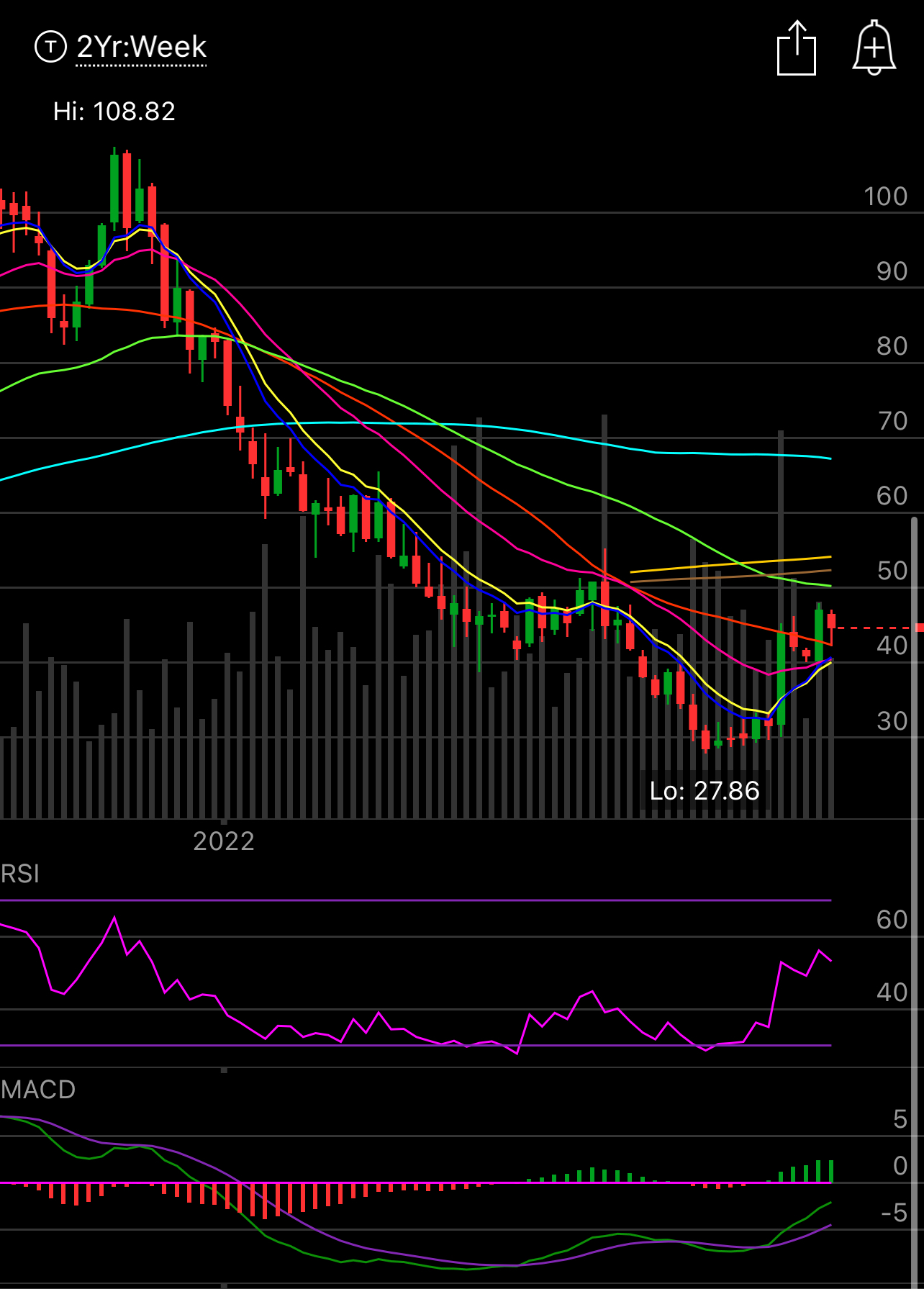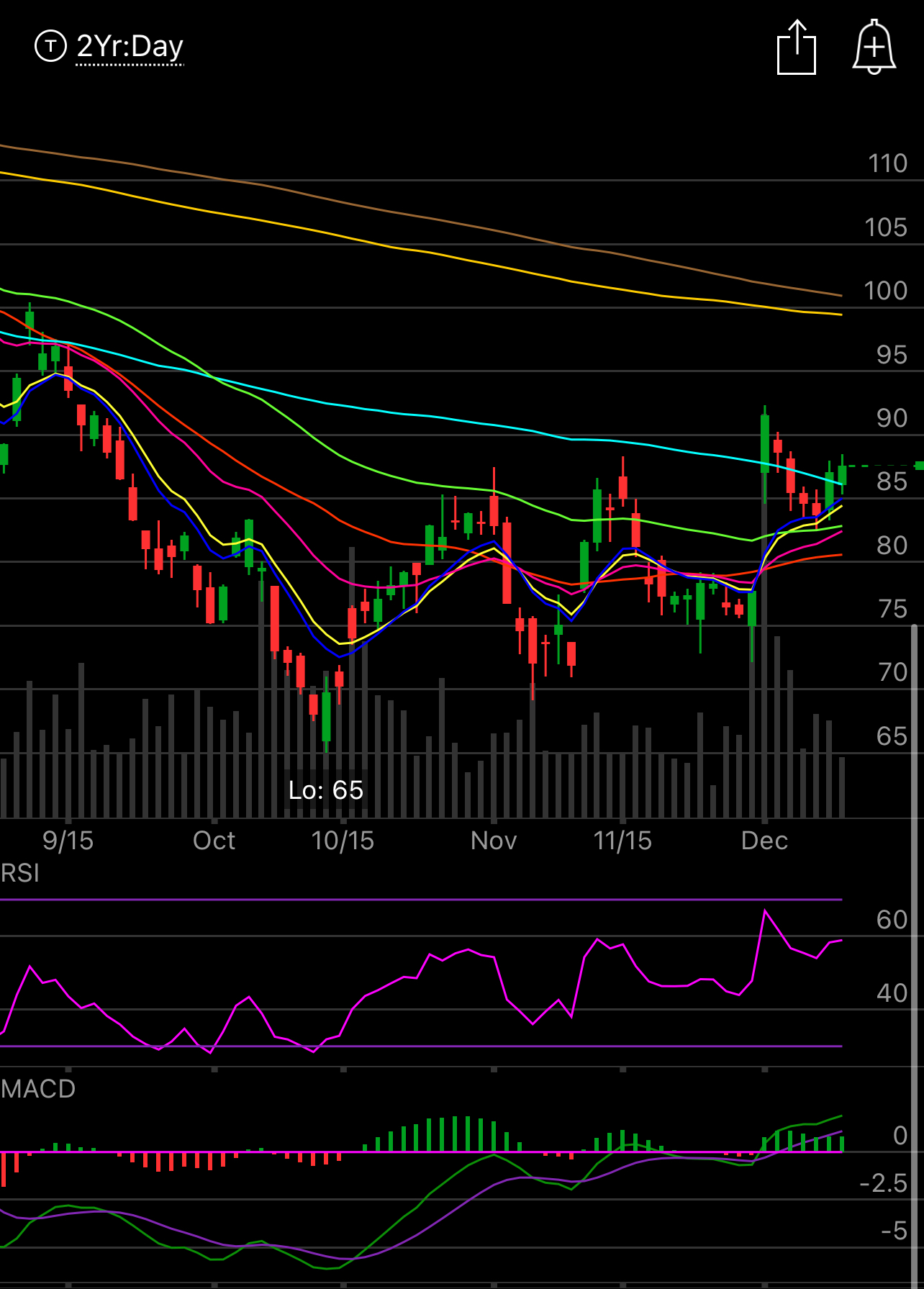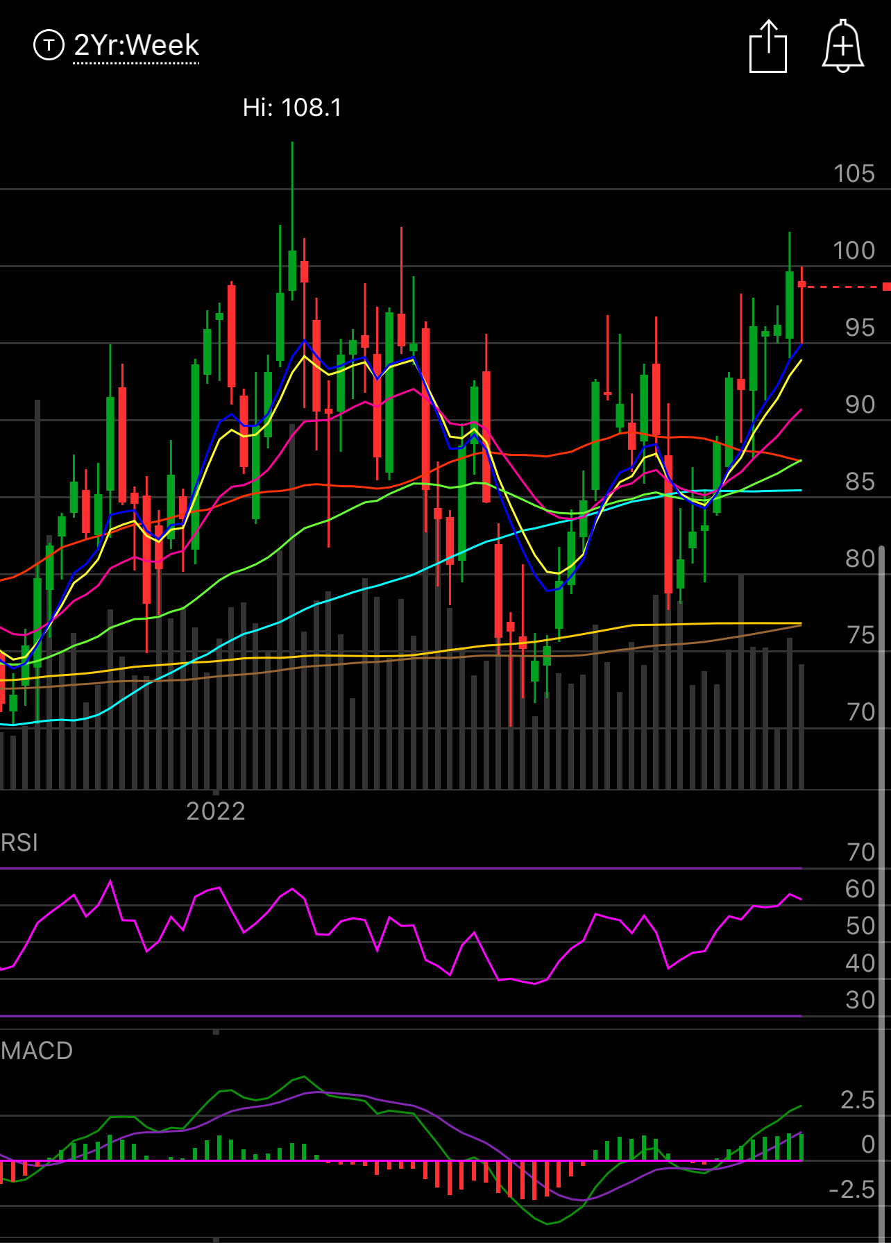 So I’ve noted this name for the last few months. Ever since Starboard took their activist stake here, it has performed quite well, even the last 2 days in the weak market it posted green candles. The relative strength is there. You can see the RSI with a series of higher highs, this is what a bullish chart looks like. That gap below does concern me and I would only focus on selling puts below it. It is around $77.