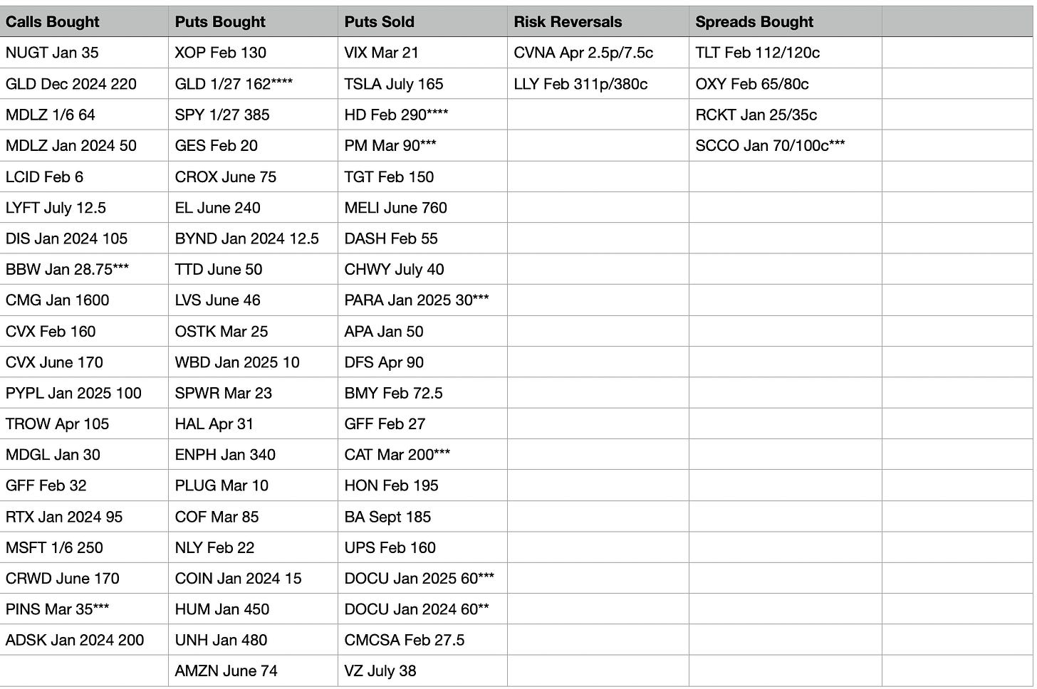 As I’ve said all year my concern isn’t so much the day to day performance of my portfolio as is the positioning I’m setting up with my short puts for where we are headed and the overall cash in the account which keeps ticking up. When you’re short puts, worst case you roll out a few weeks/months until you get the bottom you’re looking for. At this moment I’m setup nicely to where even if the market dips 5-10% in the next few weeks, my puts are all sold at much lower levels where I would be put these good names at levels with technical and fundamental backstops. Overall, the next 2 weeks are going to be very slow, volume dries up as many are out of the office until after new years. Tomorrow’s OPEX is likely the last large volume day of the year.