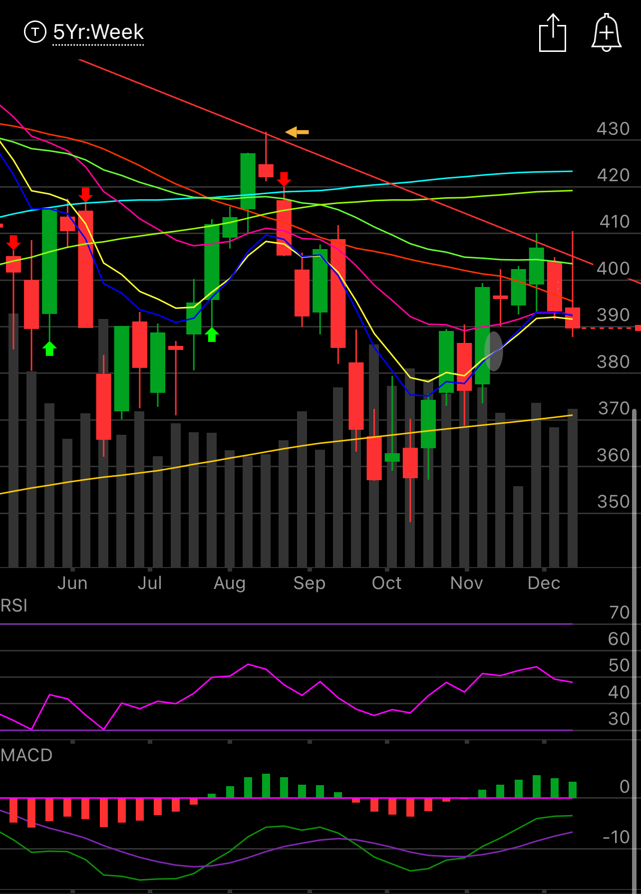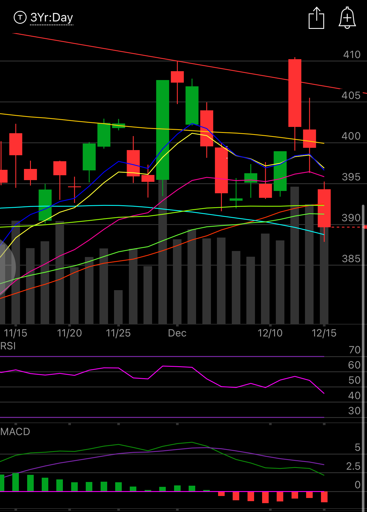 What a nasty day. This should have happened yesterday when I had my puts but the market makers never let things play out as they should, once all of yesterday’s options action expired, they market plunged to its rightful spot below 390. I can’t really complain as this was what I’ve been looking at occurring for some time now. We have to face reality that earnings are set to decline, seasonality is not a thing, and the charts are the charts, they never lie. People ask me for my 2023 prediction often. In my opinion, it is going to be a rough year, we’re going lower, we probably end up here in this same 4100 range at the end and the buy and hold types will be frustrated in my opinion. Those of us who follow options flows and sell premium on directionally strong names like I try to do in here will continue to outperform. Let’s get into today’s charts.