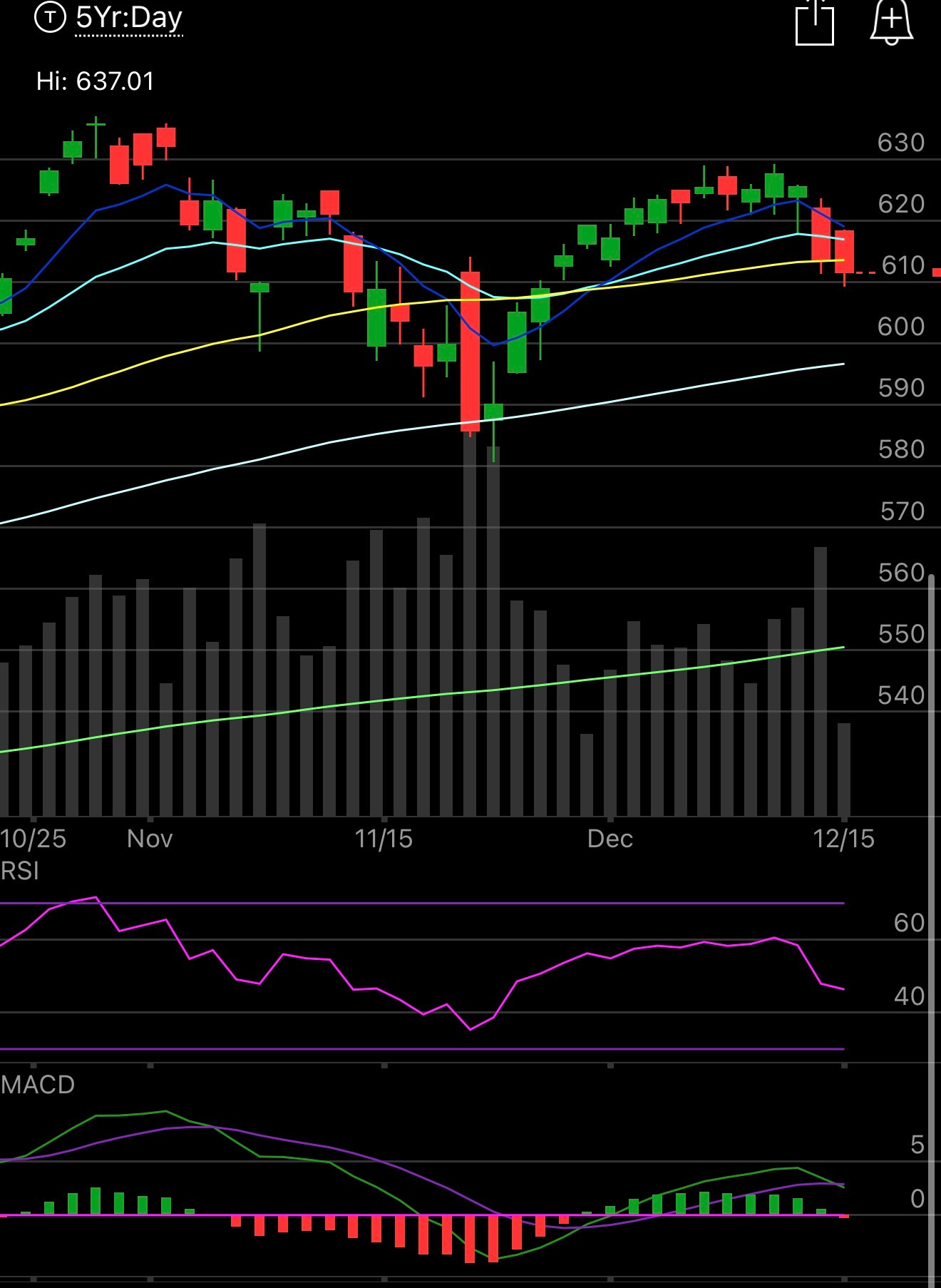 The SPY is testing the 21 ema for the 2nd straight session, typically multiple tests eventually lead to the floodgates opening lower. This morning we opened up very green on the Nasdaq and flipped red very quickly, with all things considered, this being the last opex of the year on friday, I really don’t think it is time to be too heavy in tech stocks since they make up the bulk of the weight. On the chart below you can see momentum rolling over and barring a sharp move up, it goes negative tomorrow or wednesday. This has been a very weak rally off the pre thanksgiving move down, we went sideways for a couple weeks and now seem to be trying to move lower. Bitcoin continues to break lower and for some silly reason the Nasdaq seems to be correlated to it where every move down there is met with one in tech stocks.