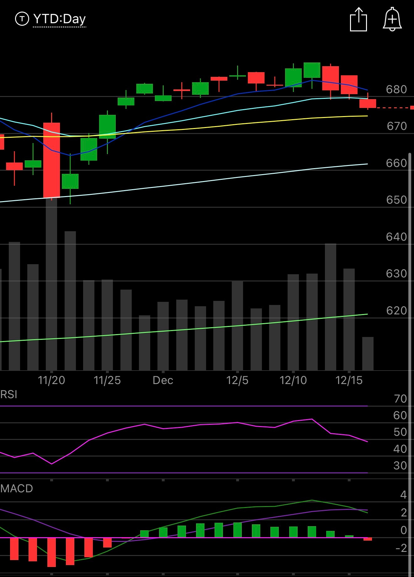 The SPY opened up below the 21 ema today and is now coming into the 50 day next. The 8 ema is about cross down through the 21 on the SPY, it already has on the QQQ, and now we’re firmly entrenched in a short term downtrend. This isn’t really where you want to press longs until we’re on the other side of that 21 ema again. We do have vixpiration tomorrow so you have to be careful being too bearish here but for the moment the setup is just not bullish under the 21 day.
