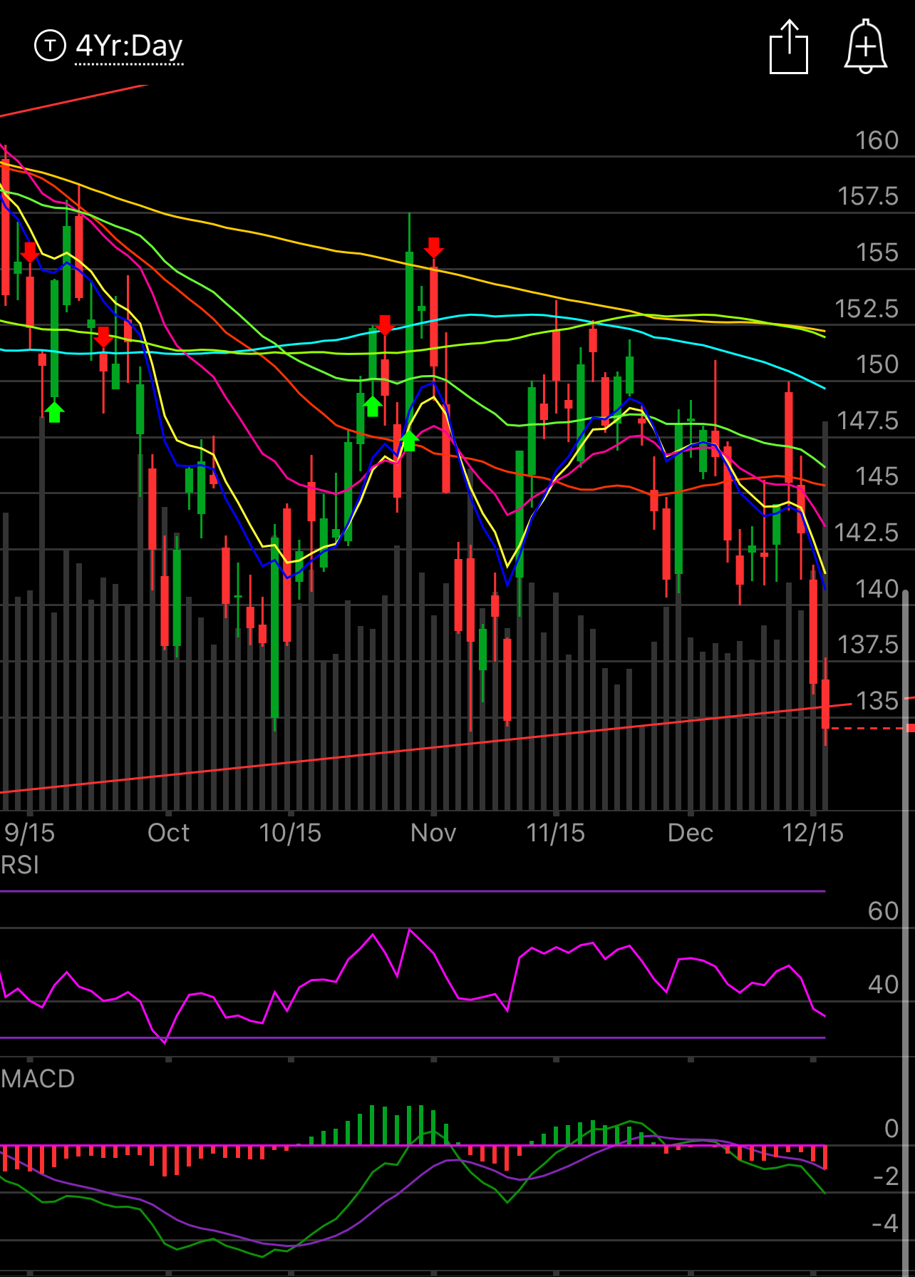 Look at this daily chart where you can see the confirmed breakdown. Look where all the moving averages are, those are all beginning to slope down, the MACD and RSI are weak, this could be a multi week/multi month move down for Apple unless it proves this was a fakeout and reverses higher immediately next week. So keep your eye on this as the implications are enormous.