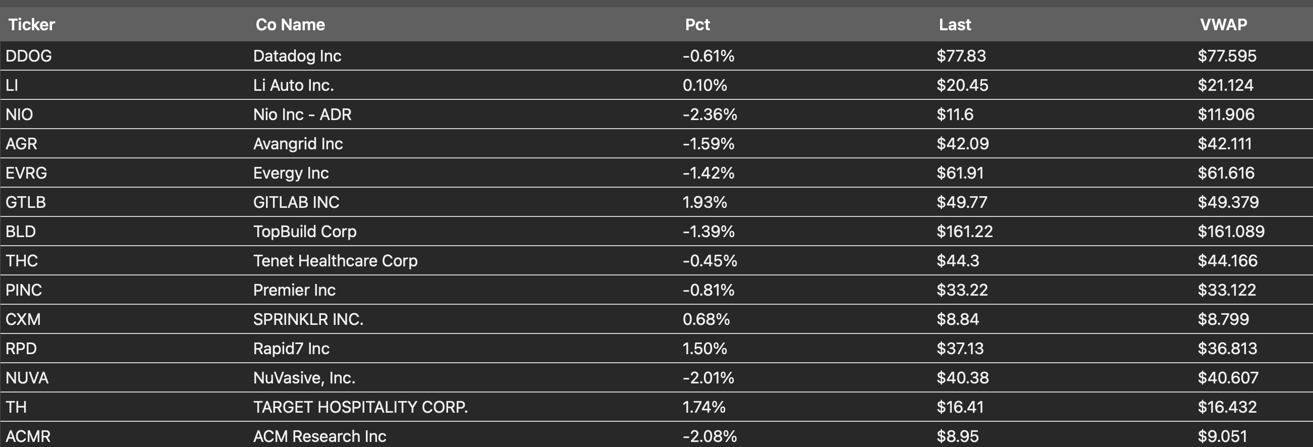 Another list with nothing really interesting. DDOG is a fantastic company posting fantastic margins, you can sell puts on it lower, but otherwise another ho hum list.
