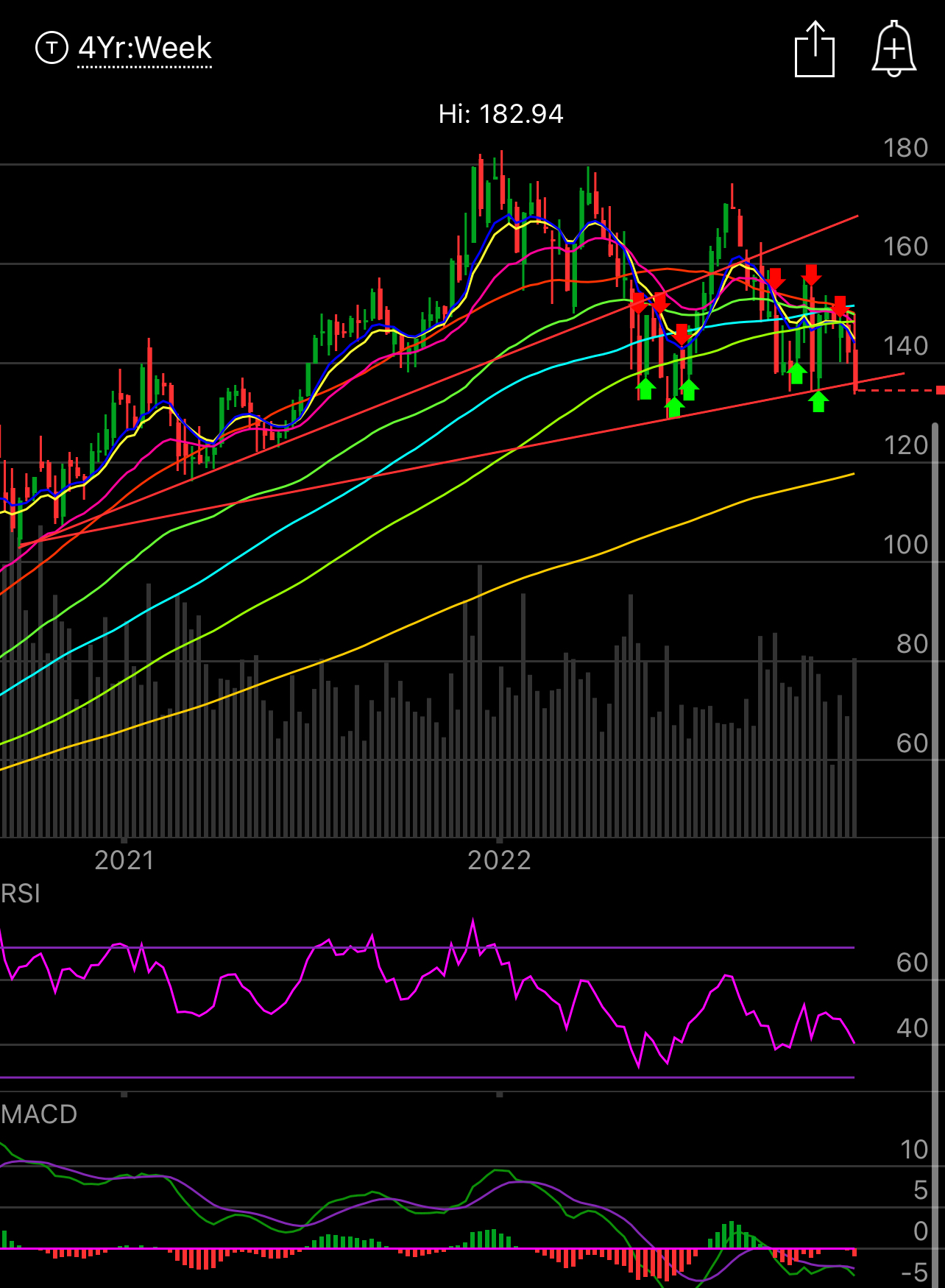 Apple is finally breaking down. This has mostly avoided it unlike the rest of the megacaps. While Amazon is down over 50% off highs this is down closer to 30%. The problem is, if it’s really breaking down, and that appears true, this is a huge negative for the market as this is the largest component in the S&P and Nasdaq. This could be a prolonged move that will weigh on markets for a long time.