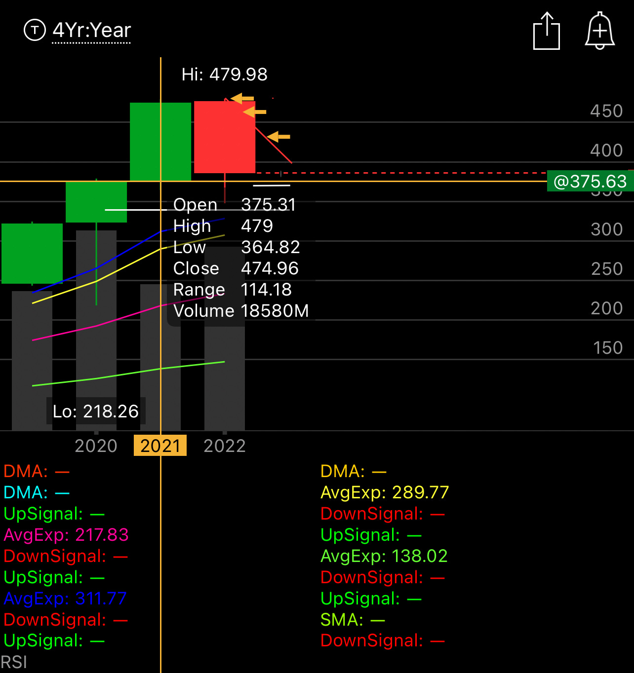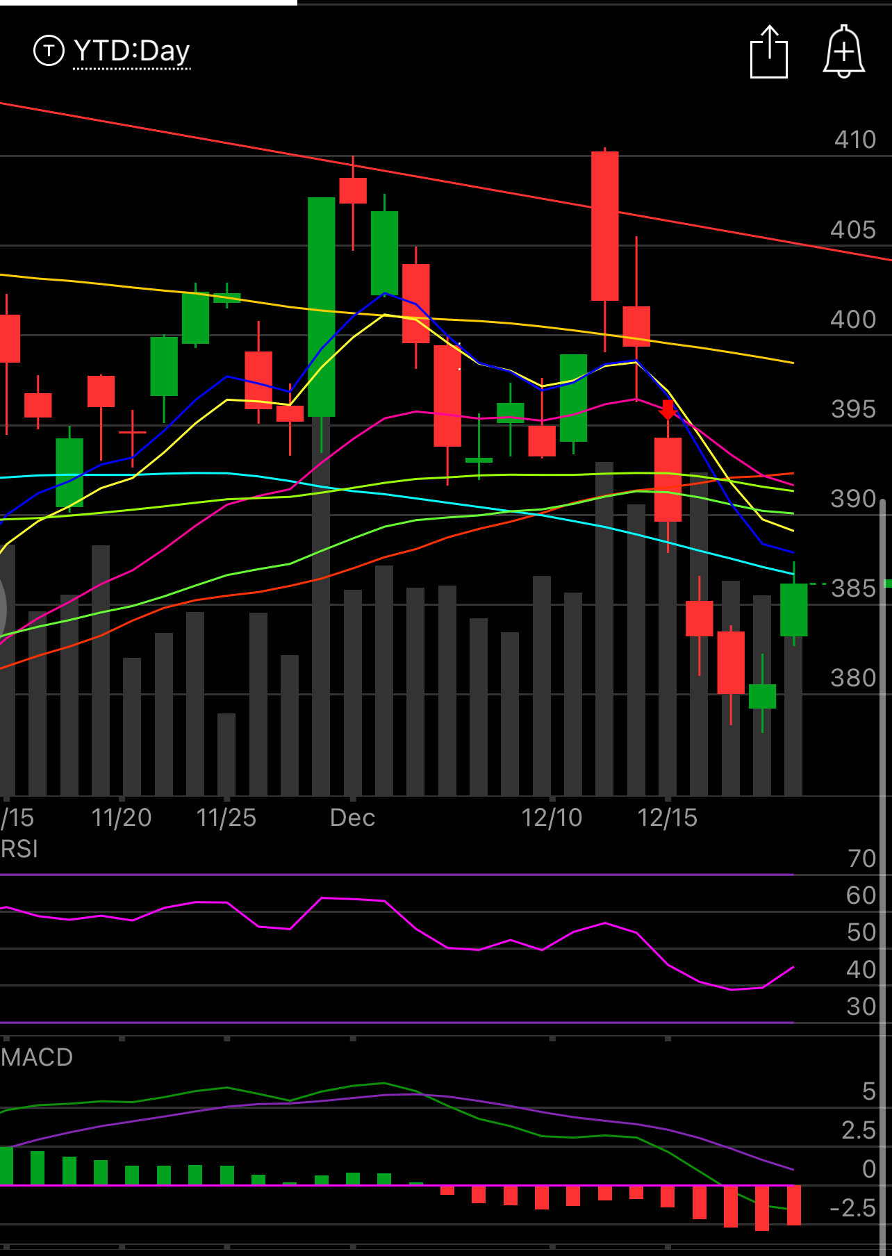 The bigger one is we’re 7 sessions away from closing out the year and we’re potentially looking at putting in a bearish engulfing candle on the yearly timeframe, something we’ve never done. For the sake of everyone, let’s just hope we close next week over 375.31, I don’t think we want to find out what comes with a bearish candle on that large of a timeframe.