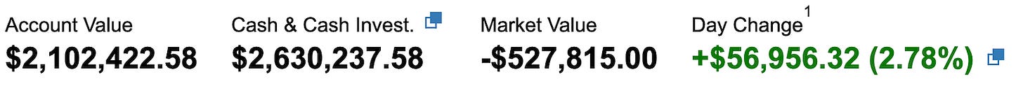 The market was green so naturally all my short puts exploded higher. I outperformed the market by almost 2x today and that’s fine but more importantly I sold a ton of puts which added another $143,000 to my coffers today. I’m almost tapped out in terms of margin short term, so I’m fairly limited in what I can do until my large PINS short puts at $23 next week hopefully expire. That’s fine I wasn’t planning on doing much the next few days anyways. I put on alot of trades today, let me go over them