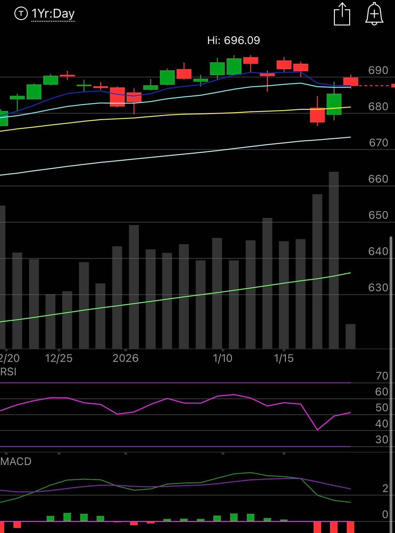 The SPY gapped up over the 8 and 21 ema today in that quick reversal bulls were hoping for following a surprise GDP print just hours after Trump backed off on the military force to take over Greenland. The market just ripped hard once it had the clarity it sought. For the moment we’re in the clear