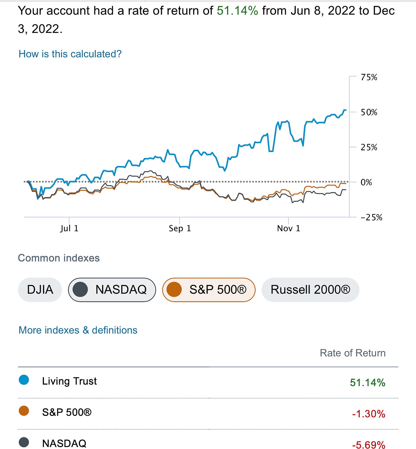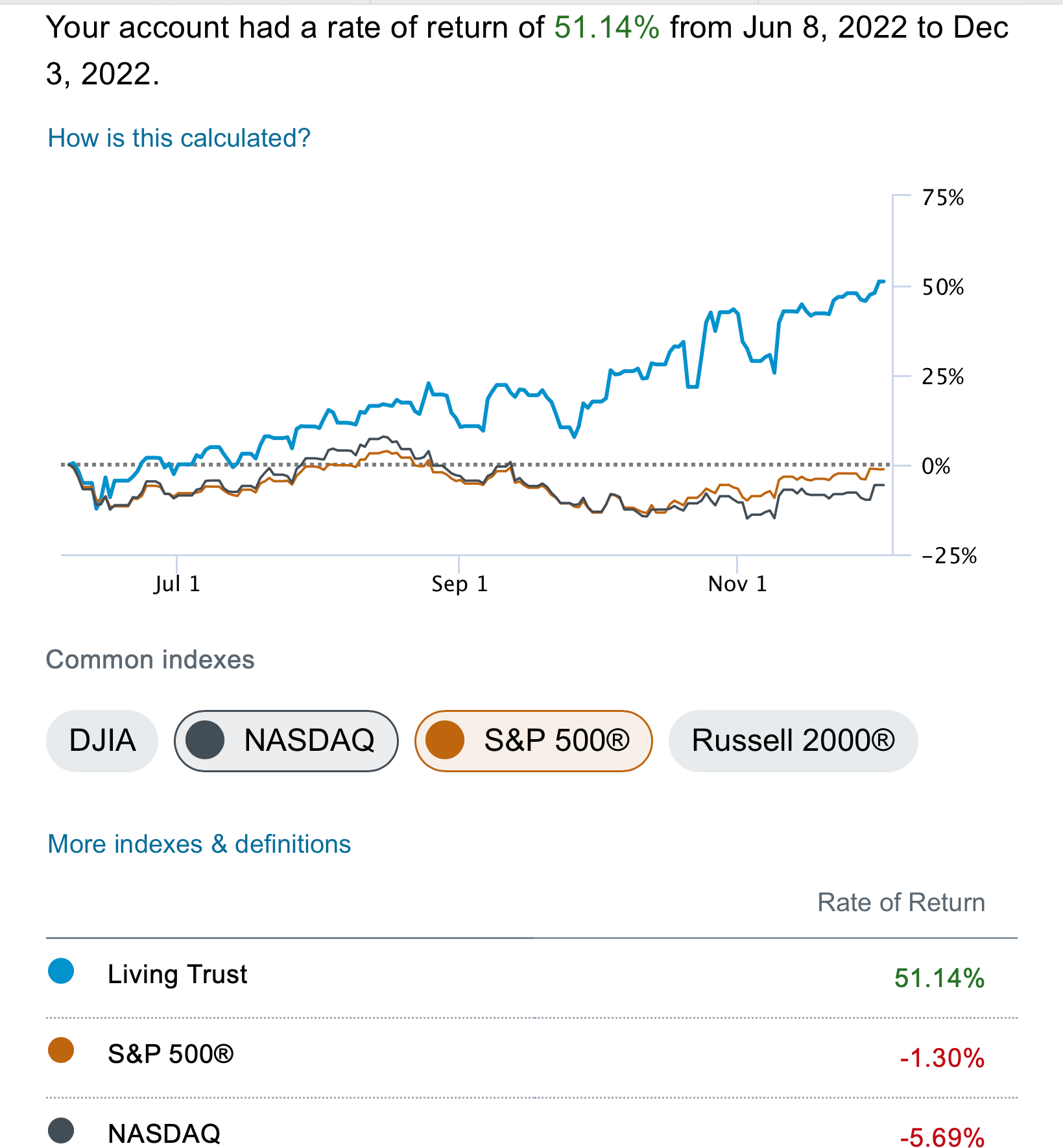 Since 6/8 Substack Inception I am up 51% and the market is RED. I’m beating the NASDAQ by almost 60%!