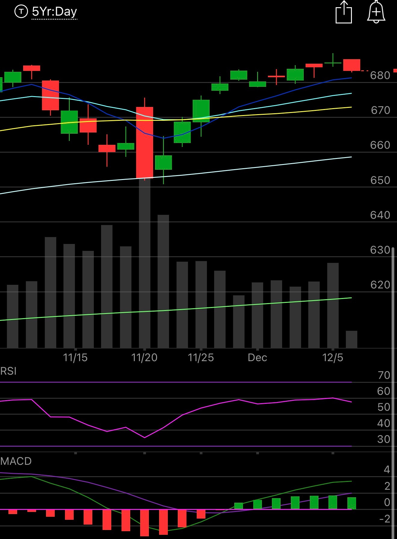 The SPY remains in an uptrend over the 8 ema as it continues to flag sideways. I imagine we won’t do much until FOMC passes on wednesday. This week we have Oracal reporting and their last report ignited lots of tech names after their OpenAI announcement, but other than that, there isn’t really much else in the news cycle right now into a slow end of the year period. The VIX is up over 10% today to nearly 17 which should be a warning sign that some caution is warranted.
