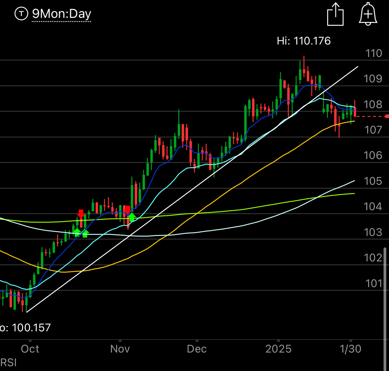 The SPY remains ok for now over the 8 ema, but we have not made new highs yet so until we do this isn’t incredibly bullish. We’re very close though, but you’d hate to see it turn here and form a lower high. Who knows what is coming this weekend with China and their AI push along with Trump and his tariffs. We are in an uptrend for now and things have been ok, you might remember me mentioning the massive put sale I noted on TQQQ the other day and why the market wasn’t a concern if someone was selling 10,000 puts on a 3x of the Nasdaq. Next week we have AMZN and GOOG reporting and that finishes off 6 of the Mag 7 with NVDA reporting in a couple weeks. What we got from the megacaps this week was they are making alot of money and as long as they remain 30% of the S&P by weight, they will buoy this market.