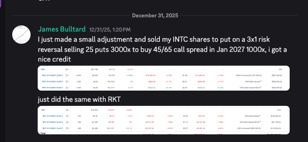 I posted my book last week in that email I sent out, on the last day of the year I ended up making a few slight changes just for tax purposes, taking some losses, rolling to short puts/calls and this is what I have right now, same names just small adjustments. So I adjusted alot of the commons I had to clear up room for the margin the put sales required. For those who do care, I do post all this in the live part of the discord right when I place them but as you know I didn’t write a recap after that post. Overall this year I don’t think I will be as aggressive as the past, I’m happy with where my book has grown to post tax and now I’m going to try a mix of selling puts for income and making a couple longer term bets with risk reversal/ratios.