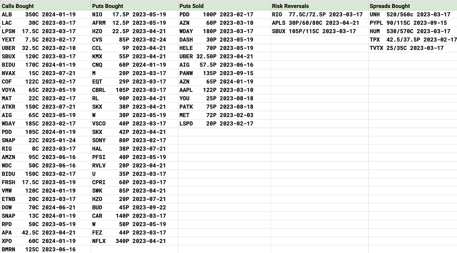 UBER saw interesting puts sold at 32.50 in Feb, they’ve been selling these for weeks on end, I first noted them in December when it was 24.xx. They also bought alot of 32.50 calls for next week, earnings play that has run hard.