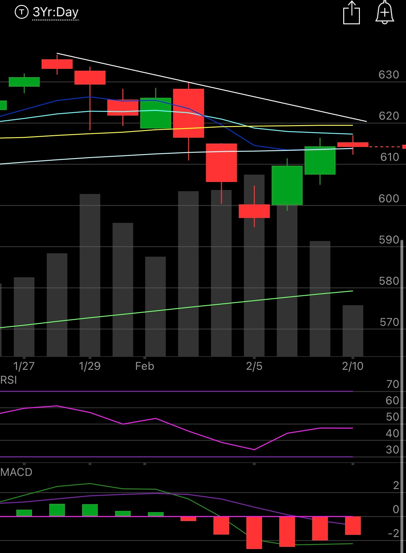 The QQQ remains stuck under the 21 ema and still in this downtrend. It has been a nice relief bounce but if it doesn’t take out that downtrend soon, the likelihood it reverses lower increases. The breadth of the market continues to improve as pretty much everything but tech continues to be bought, unfortunately for most people at home, tech is usually the bulk of their individual holdings so things feel more painful than they really are. Keep your eye on this light blue line overhead, if the QQQ rejects that 21 ema, it likely will go back and retest the lows from 3 candles back.