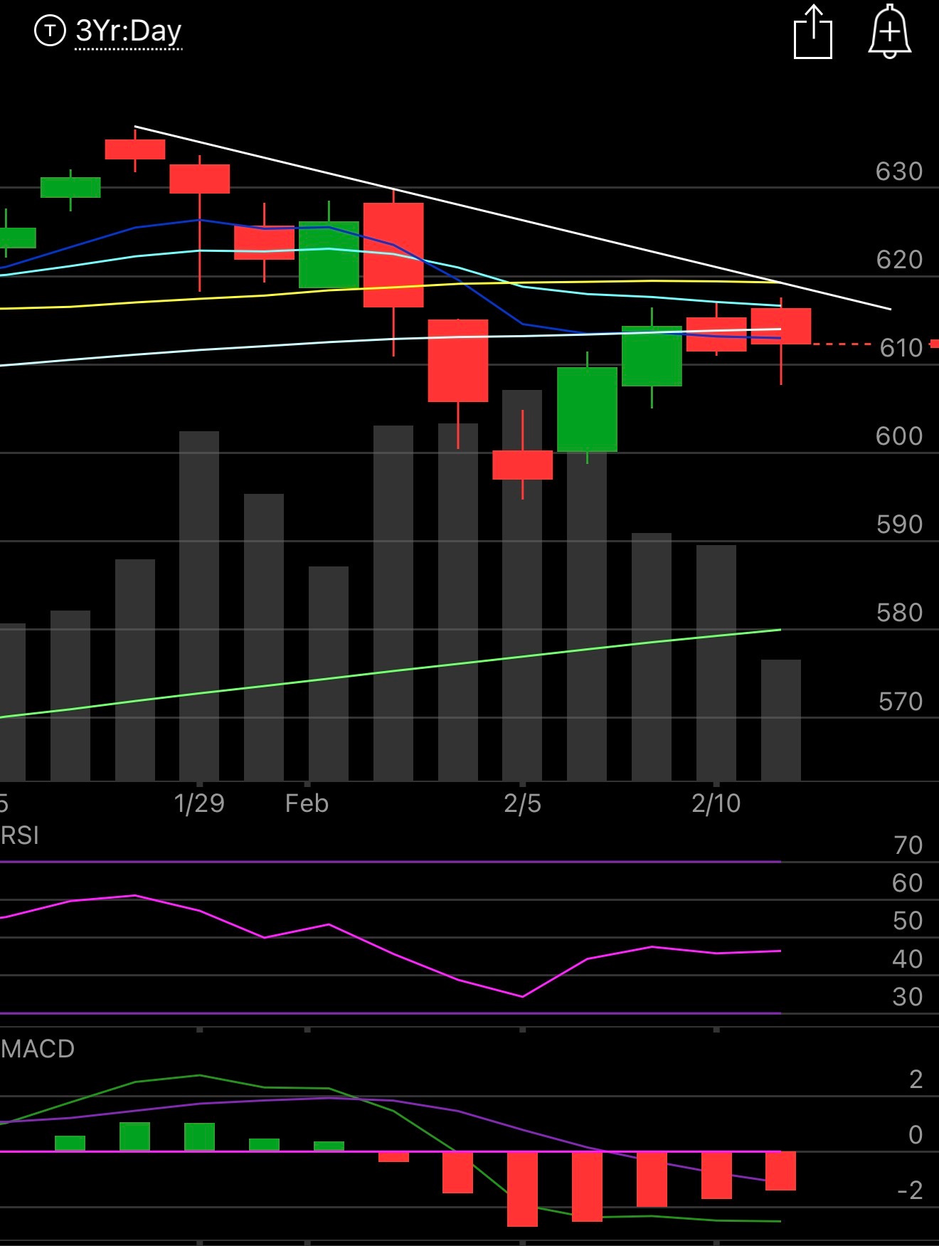 The QQQ is nearing its first chance to break this downtrend, will it do it or are we rejecting and turning down. The 21 ema continues to be resistance overhead as we have so far rejected it again today. The IGV continues to be the weakest link in tech with software down another 3% today. Small cap names are just a minefield with countless names down double digits everyday seemingly. Tech remains on the outs for the time being and even with good reports some of these names are being sold hard.