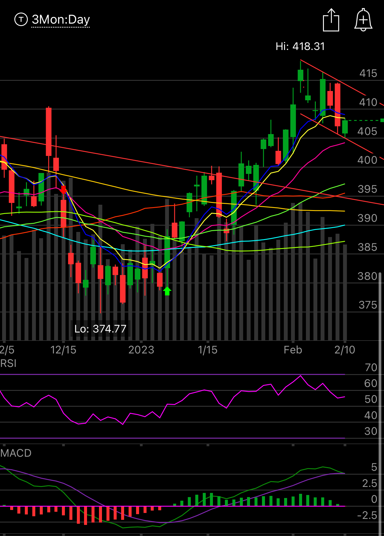 With that said, let’s look at the chart of the SPY below. The talk going around is inflation will come in hot and equities will plunge. While that is possible, I want to point out that for the moment while we are below the 8/10 EMA, the market remains broken out and actually it could be debated that we are forming a bull flag right now in the channel I drew. As long as we remain over that downtrend line, we remain broken out, so keep an open mind, anything can happen tuesday, we’ve already changed the defintion of a recession countless times this year. If we breakout I would target 430 on the upside and if we breakdown I would target the 380 level as a place to look for a floor with all that support. The MACD does look set to go negative tomorrow which would be a counterpoint to the bullish structure.