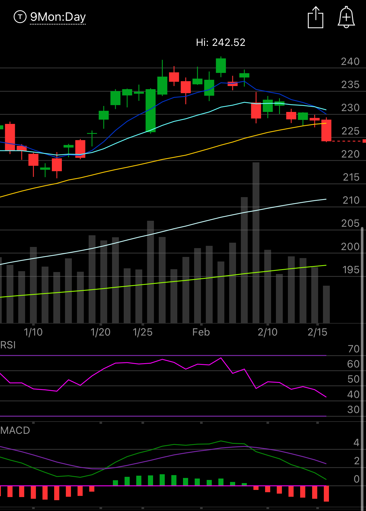 Look at another name like AMZN below, you all I know I closed up my huge call spread last week after over a year. Look at the chart today losing the 50 day for the first time in a very long time. That isn’t bullish and AMZN is an amazing company, a forever stock, but as a trader, ideally you would avoid being in weakness so I closed up the rest of my short puts on AMZN today as well. If you were to play AMZN you’d want to short puts off 195 or so below the 200 day and see if you can steal some shares.