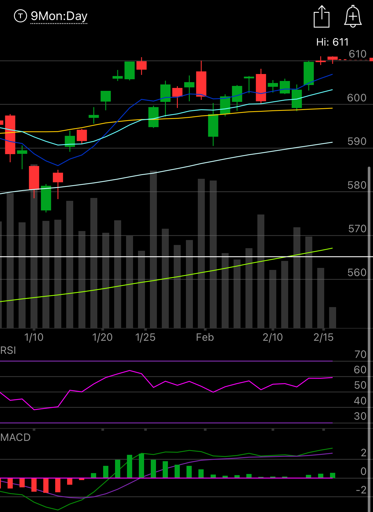 The SPY is flagging here over the 8 ema, nothing crazy, it looks good, we’re seeing a rotation to the other names besides the mag 6 which is always healthy to see. As long as we remain over the 21 ema, the light blue line, we’re in an uptrend, the end.