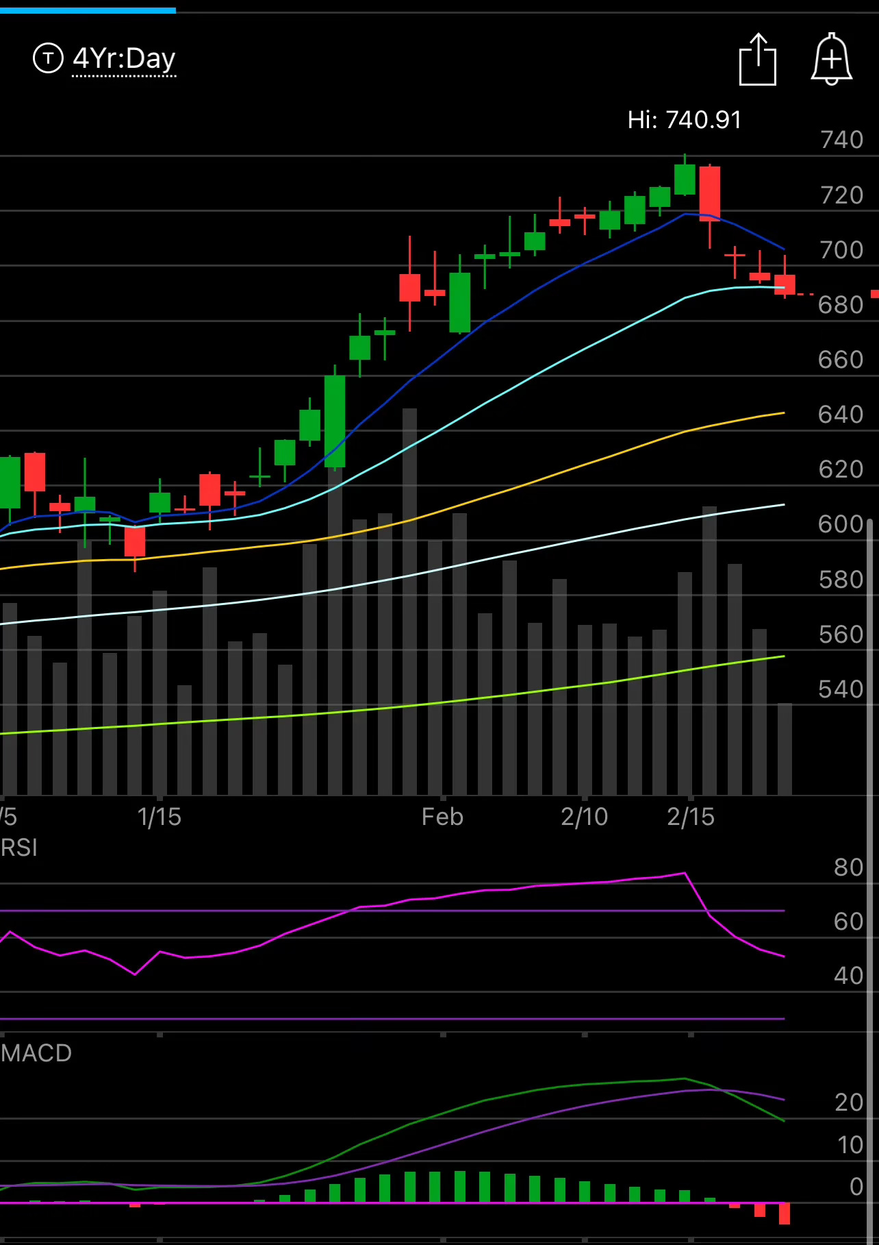 Don’t be pigs. Yesterday I posted this META chart that is significantly worse this morning but I had this on my computer so I’m using it here. When I first entered META with that big risk reversal it was the day that massive bullish engulfing candle below formed here in late January and I held that trade for around 2 weeks and sold it here on February 5th. I got all those comments about “why” I sold. While META did continue its march higher from the 716 level I cashed in at all the way up to 740.91, it also died this week falling nearly $60 in 4 sessions to close at 682 yesterday. Do you see where the rsi was on the chart below when I sold in early February? It was off the charts and while it did continue for a few more sessions, it eventually normalizes and names come down to earth. I was happy with what I made, moved on, and the people who ignored reality, are now hating life. Will META go to $1000 by 2027? Probably. Do I care? Not really, I made money and there’s always another trade, hell I may even re-enter META at some point, but the point is, I stuck to my rules and did not hold an overheated stock for too long.