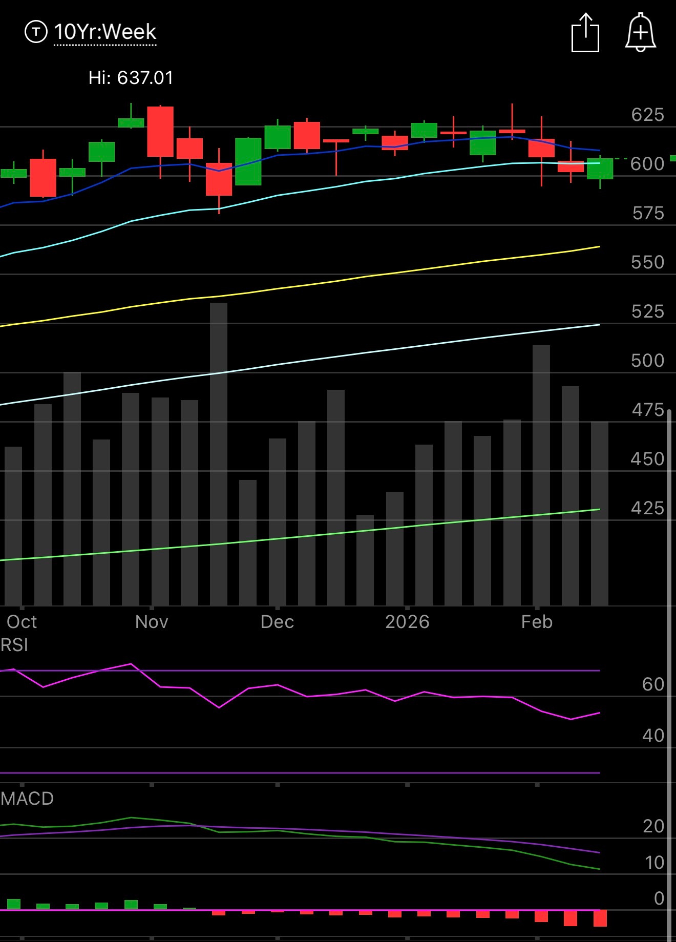 Tech is where our issues lie and the biggest tech company in the world, NVDA reports this week. I don’t really know how NVDA can surprise enough to impress people considering we know that they’re sold out for years to come but until NVDA breaks out of this range it has been in for the last 6 months it is going to be difficult for the overall tech sector to rise up. Nvidia is almost a 10% weighting in the Nasdaq. This lost the 21 week for the first time in 9 months a week back and recovered it this past week but if this goes lower by friday, an 8/21 bear cross down is all but assured which would mark the start of a bigger downtrend.