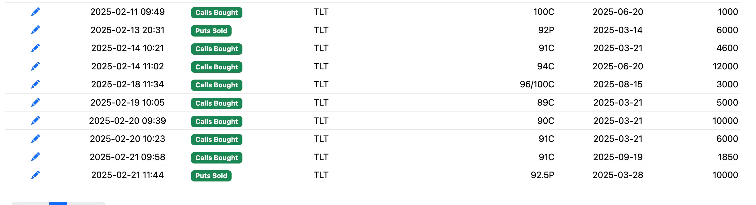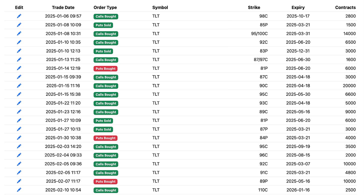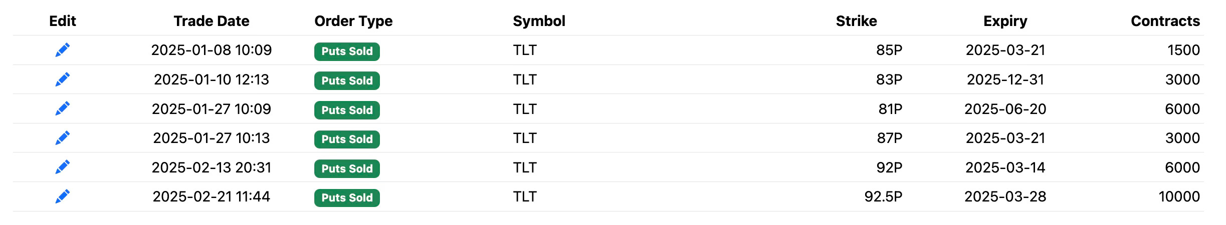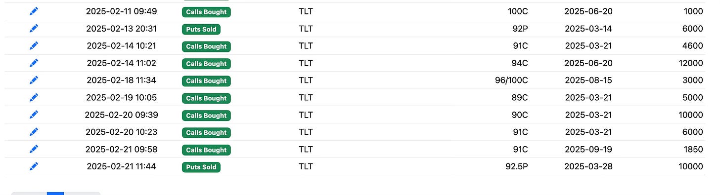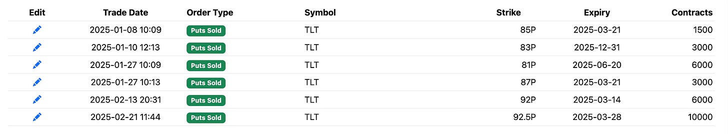 Looking above and seeing TLT be the top trending name all year is interesting, here are all the open sizable trades I’ve logged.