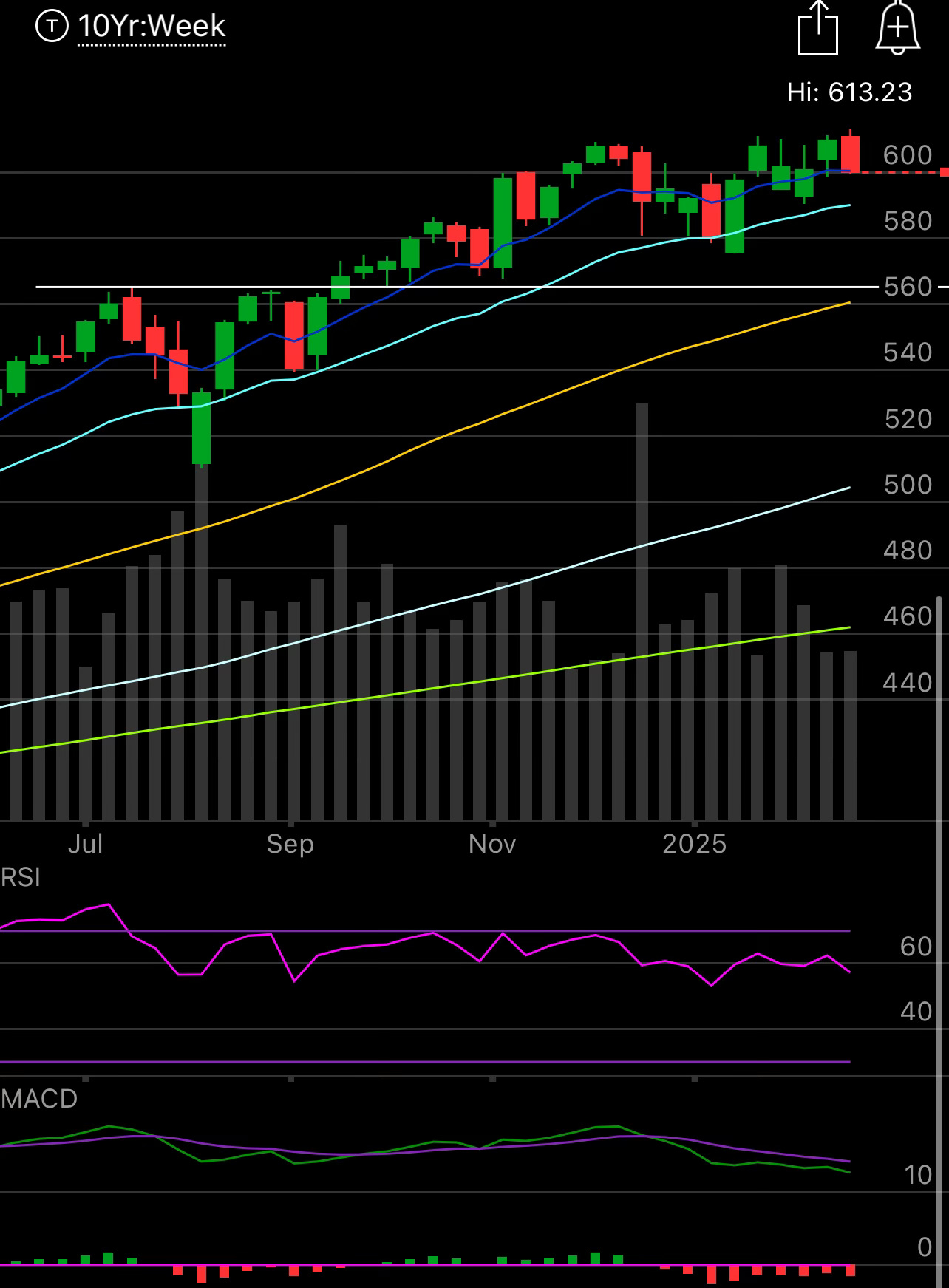 We closed up last week with a nasty bearish engulfing candle on the SPY that broke the 8 week. The last time we did that was 6 weeks back and the following week was met with a gap down below the 21 week and a huge reversal. The big level to watch now is that 21 ema below just over 590, we have not closed below that on a weekly basis since October 2023, it is now less than 2% away. A close below that in the coming weeks would signal a major trend shift.