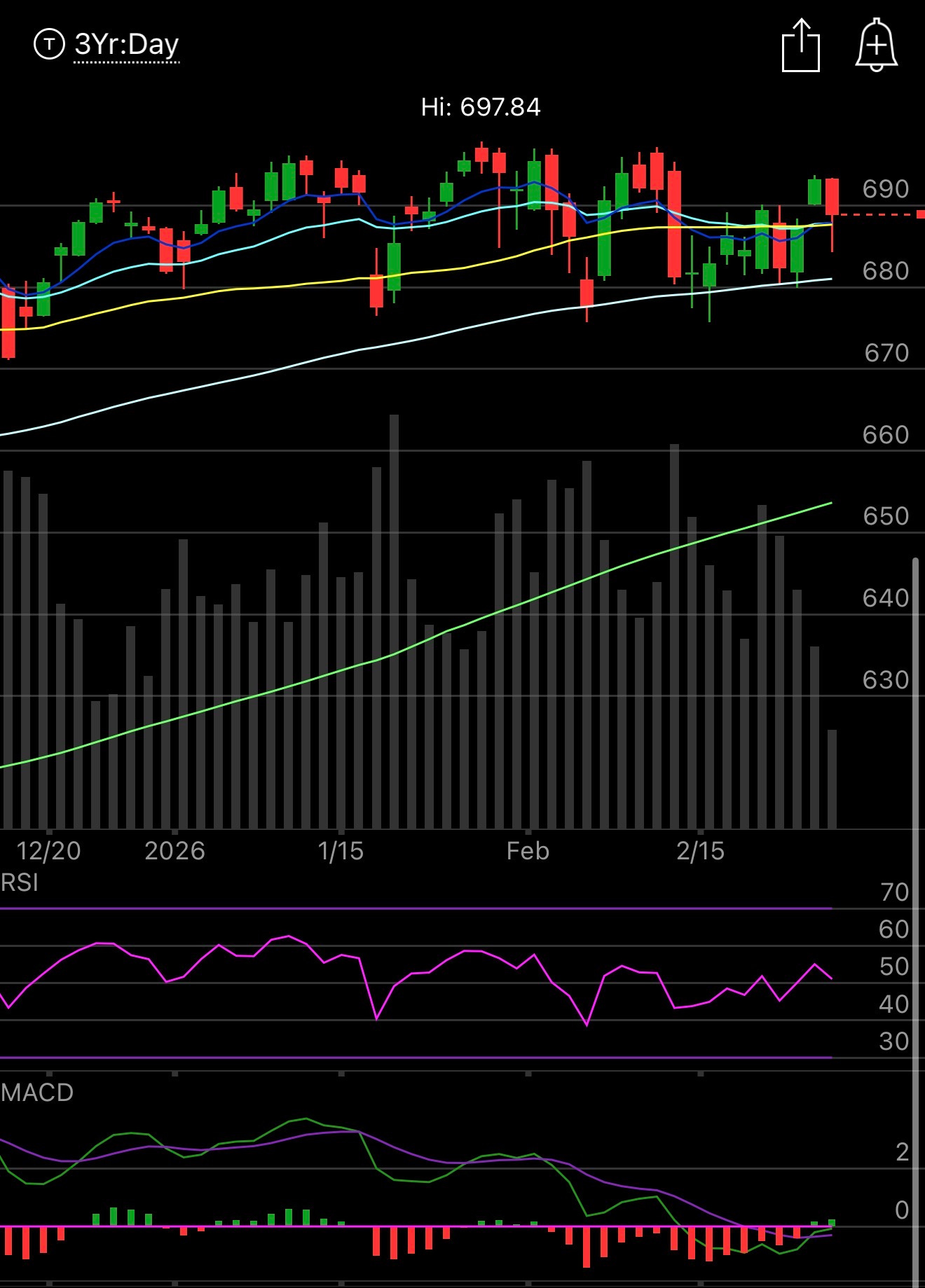The SPY is holding up over the 8 ema so far today and the carnage is contained to tech after the bad reaction to the NVDA report. NVDA did everything right and still sold off, that is just the tape we’re in where tech is not loved. The VIX is remaining elevated which is causing havoc in options and alot of that has to do with the constant back and forth on Iran. Yesterday war stocks were down, today war is possibly on the table. The one thing the market hates is uncertainty and it is getting a big dose of it right now. The 100 day just over 680 has been strong support recently and until that breaks down you have to think it will be again if it comes to it.