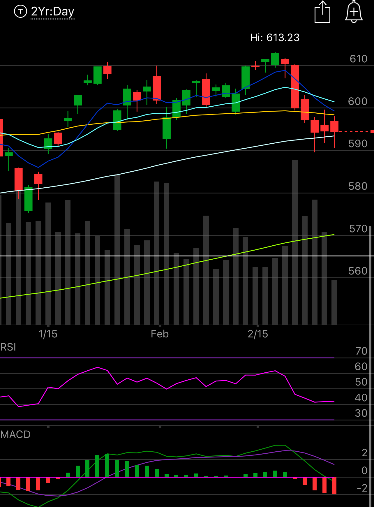 The SPY continues to look terrible, 3 days in a row now we have broken below the 100 day(white line) and recovered. If you notice all recoveries remain below the 50 day(yellow line) so while we are recovering, there is nothing bullish about this. If we are honest here, this is a bear flag forming right ontop of the 100 day with the 8/21 bearish crossover overhead and the 50 day starting to slope down. None of that is good and unless we get a quick rebound tomorrow on PCE, we could be in trouble. The good news in all of this is because we’ve been flat for so long, the 200 day is now over 570, so moves down should find major support around 5% from here on any big drawdown. Today we got news from Trump that the Mexico and Canada tariffs go into effect next week and the /NQ reversed a 200 point gap up. We will see what is coming but all the megacaps have reported and as it sits right now, we just don’t have any catalysts to push us higher in tech and tech is the bulk of the market weighting. If PCE surprises to the downside tomorrow, we could get very ugly, quick.