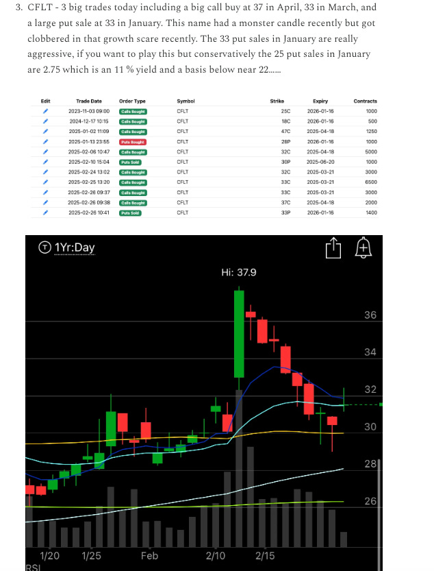 CFLT - In yesterday’s recap here I noted all those CFLT trades and this morning it goes a huge upgrade and is up around 6% right now. This name kept seeing repeated call flows through the recent market sell off.